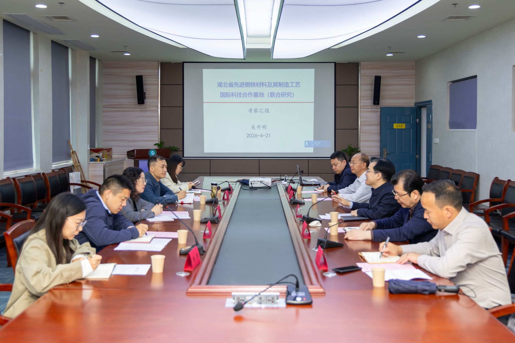 会上,先进钢铁材料及其制造工艺国际科技合作基地主任吴开明汇报了基地建设详情。与会人员围绕科技经费规范使用、合作成效评估等进行了交流。会后,朱俊梅一行实地考察了相关科研现场。