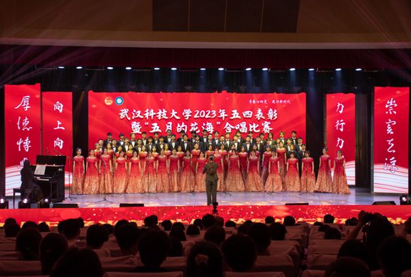 5月4日晚,我校于黄家湖校区沁湖礼堂举办2023年度五四表彰暨“五月的花海”合唱比赛,全体在校校领导出席活动并为“优秀共青团员”“模范共青团干部”“五四红旗团支部”“十大魅力学子”“五四红旗团委”颁奖。获奖个人代表袁鑫和获奖集体代表章健宇发言。“五月的花海”合唱比赛由17支队伍进行演唱,最终材料与冶金学院和管理学院获得一等奖。(王政全 熊雄)