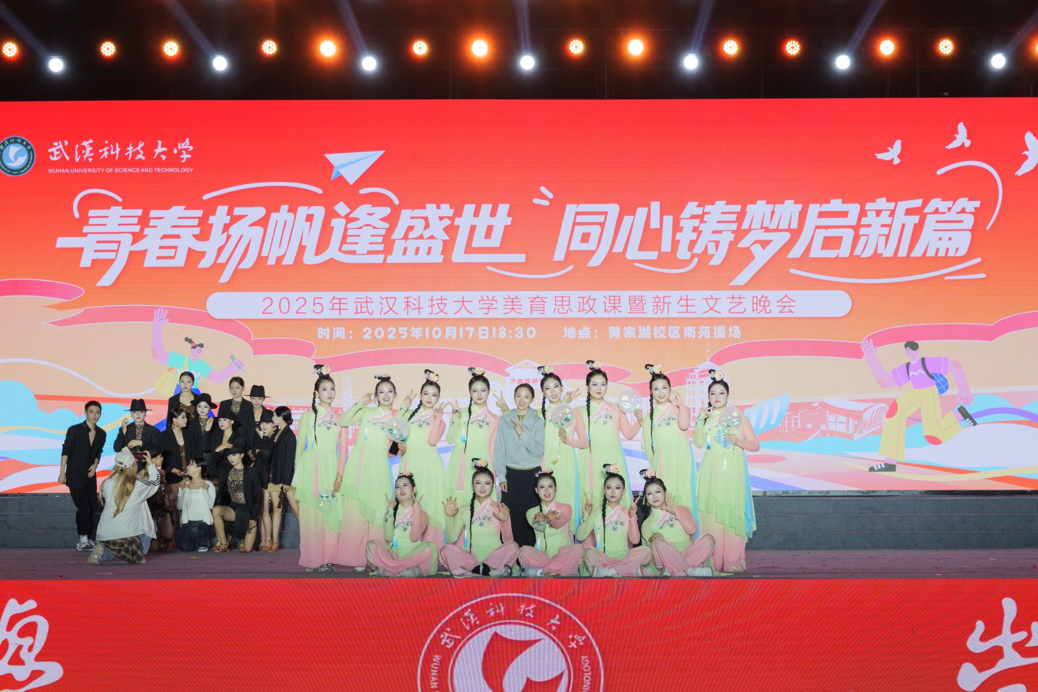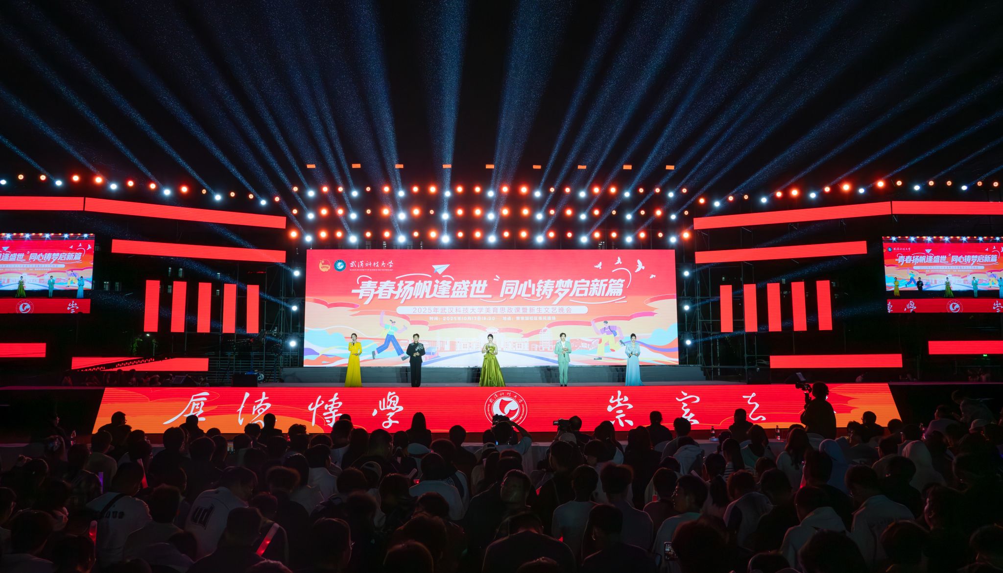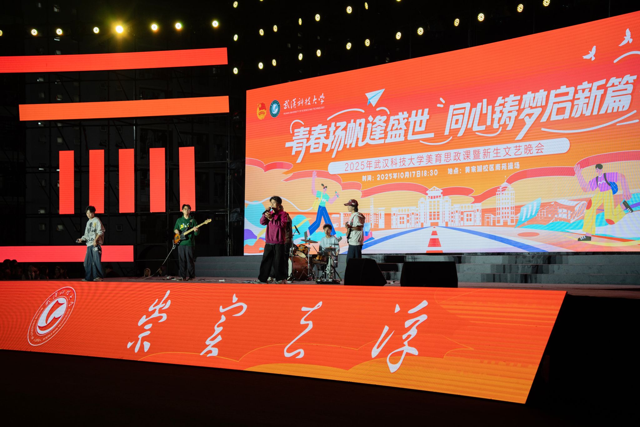 10月17日晚,我校在南园操场举行了2025年武汉科技大学美育思政课暨新生文艺晚会,活动分为三个篇章、共14个节目,节目形式涵盖乐队合奏、舞蹈、朗诵等多种形式,为2025级新生提供了良好的校园氛围,使他们更快融入校园。(王翔宇)