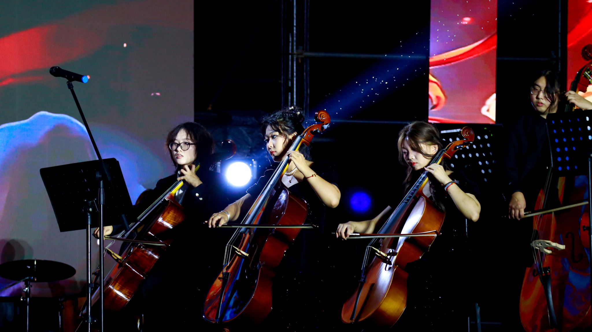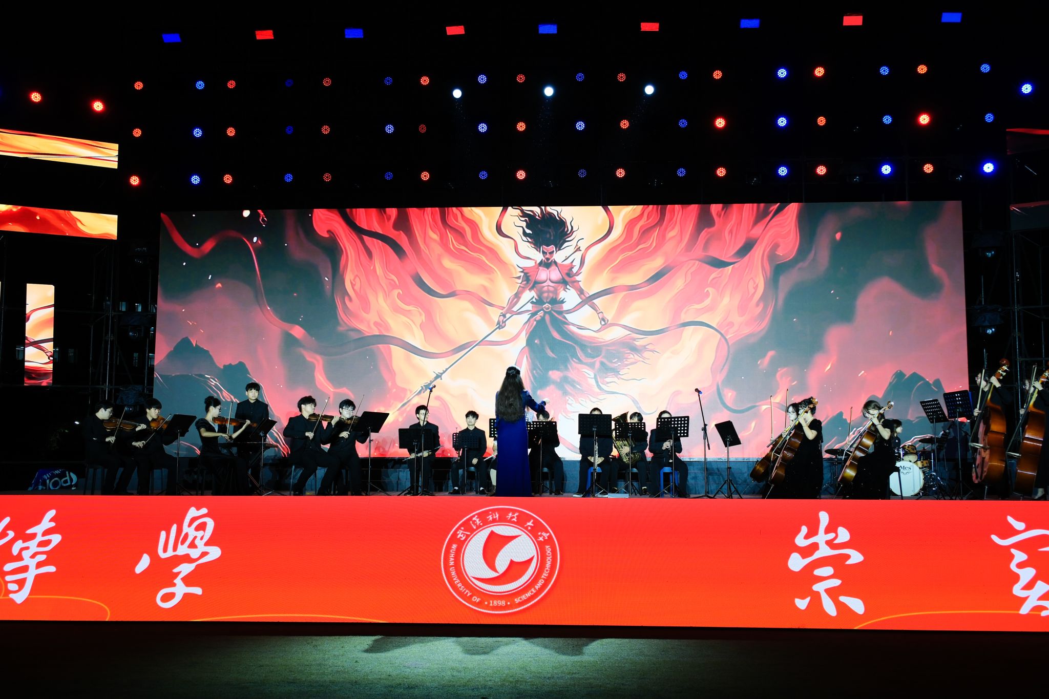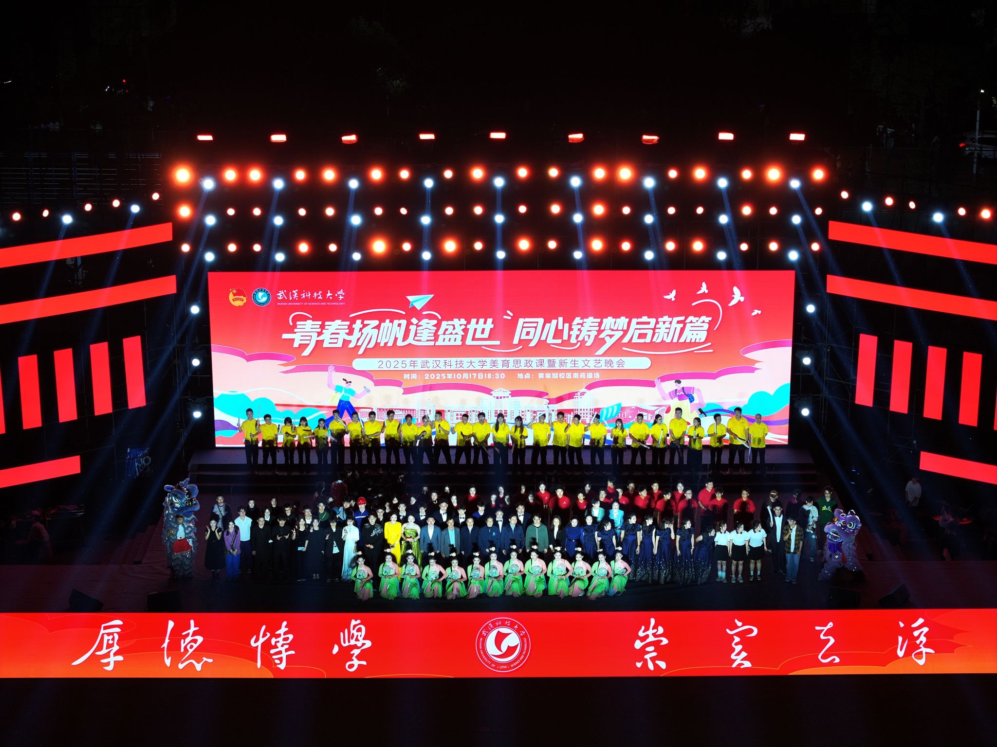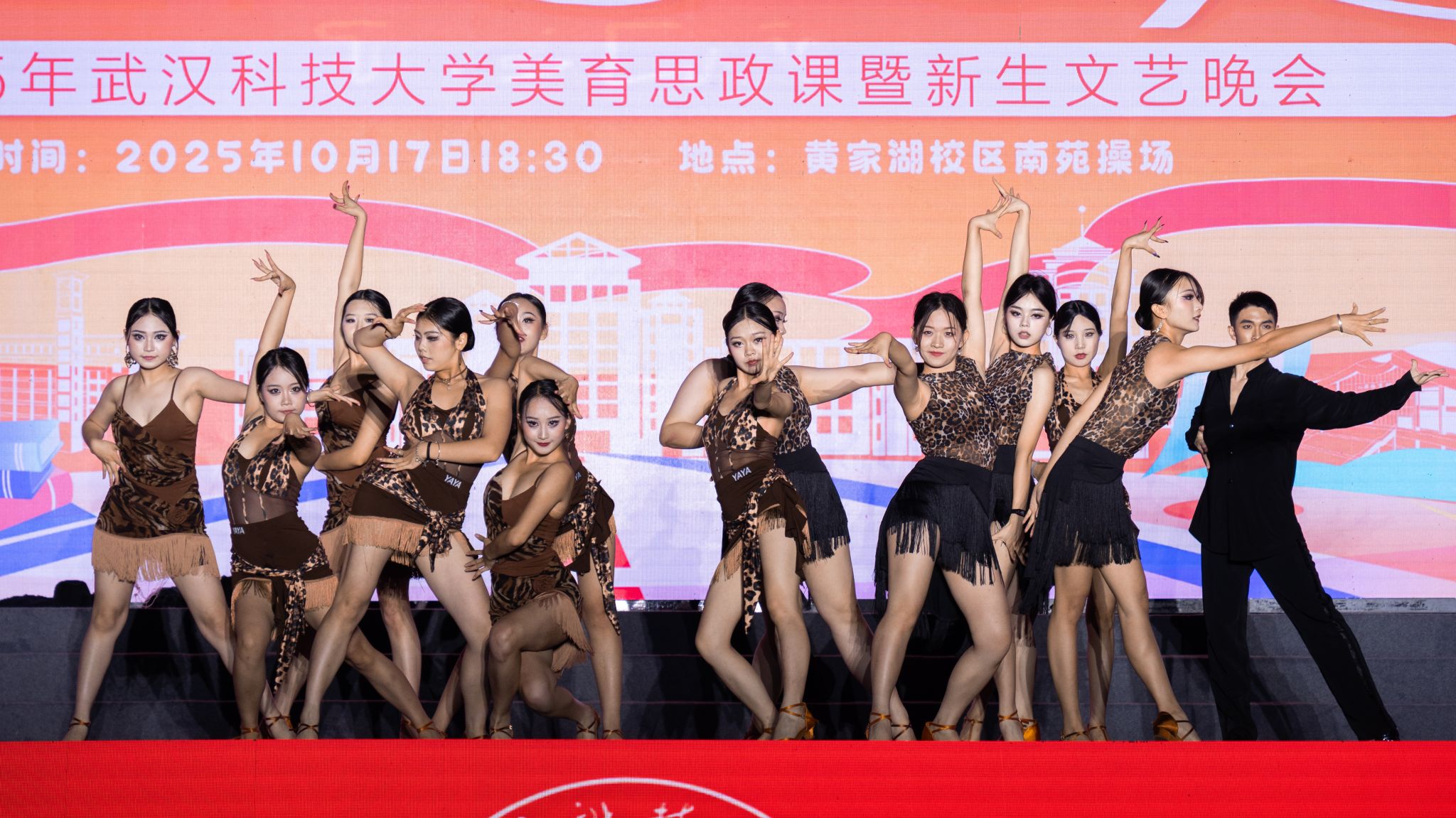 10月17日晚,我校在南园操场举行了2025年武汉科技大学美育思政课暨新生文艺晚会,活动分为三个篇章、共14个节目,节目形式涵盖乐队合奏、舞蹈、朗诵等多种形式,为2025级新生提供了良好的校园氛围,使他们更快融入校园。(王翔宇)