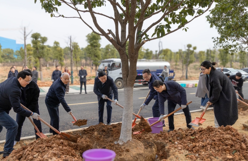 3月10日上午,植树节来临之际,武汉科技大学党委书记徐雁冰、校长倪红卫等全体校领导与师生一齐在黄家湖校区沁湖体育馆前开展植树活动,为校园增添新绿。