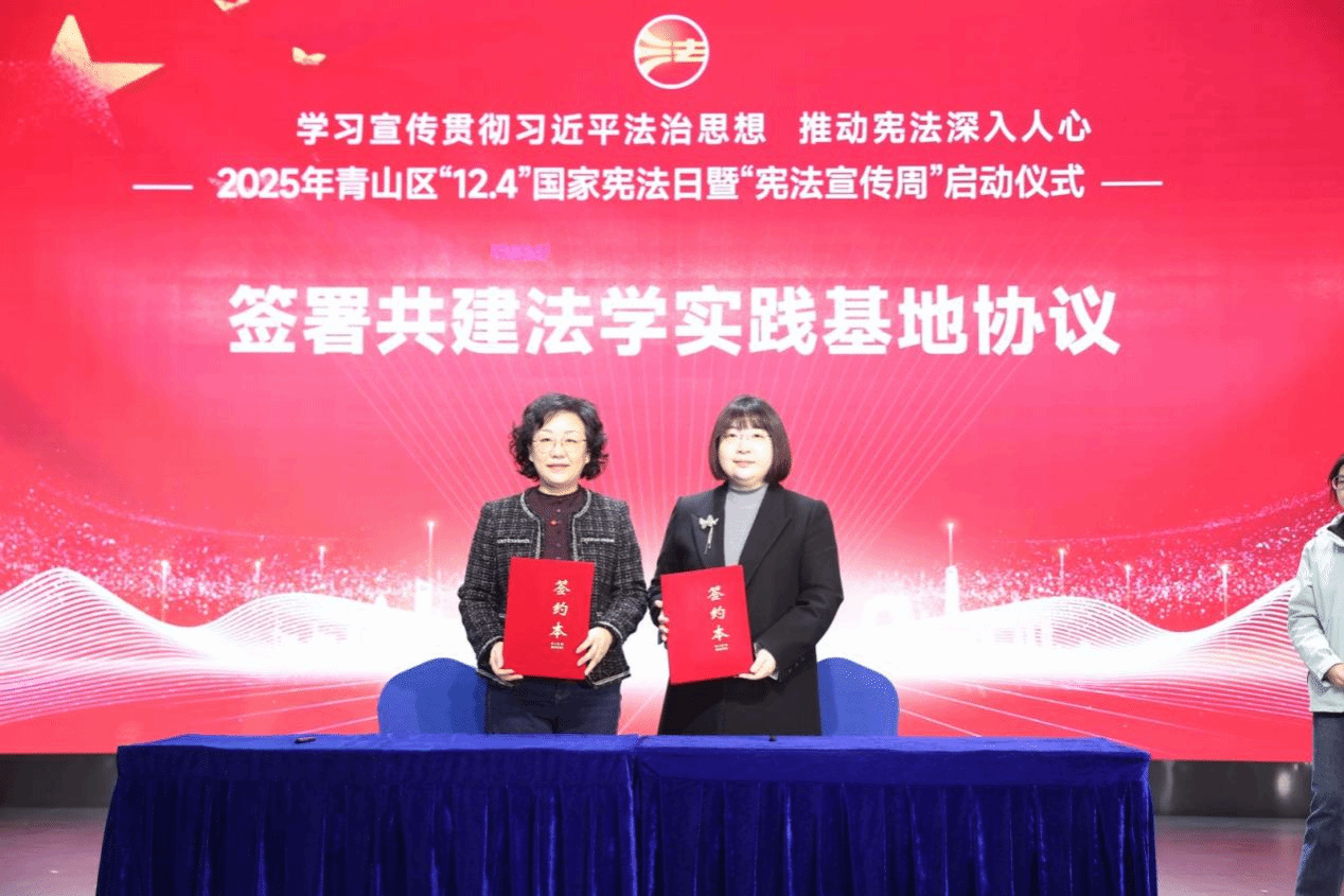 共建签约仪式上,青山区司法局局长陈丽与我校法学与经济学院党委书记杨彦共同签署实习实践基地协议,标志着青山区在推进法治人才培养、深化校地法治合作方面迈出了坚实一步。
