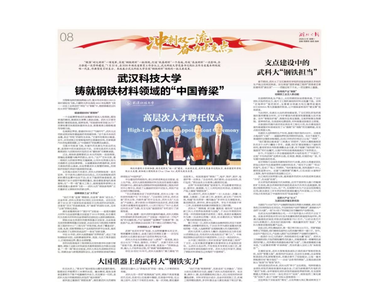 金属材料工程专业的课堂上,她是传道授业解惑的首批省级“新工科”课程负责人;深夜实验室的灯光下,她是攻克氢脆难题的“钢铁女侠”;学生生病住院时,她是温情煲汤的“黄妈妈”;国际学术会议上,她是用流利英语讲述中国材料人创新故事的推广者。作为我校材料学部二级教授、博士生导师,“楚天英才计划·教育人才”楚天名师和“香涛学者”特聘教授,黄峰教授以“累与快乐并行,爱与奉献同步”的信念,在三尺讲台与微观世界间,...