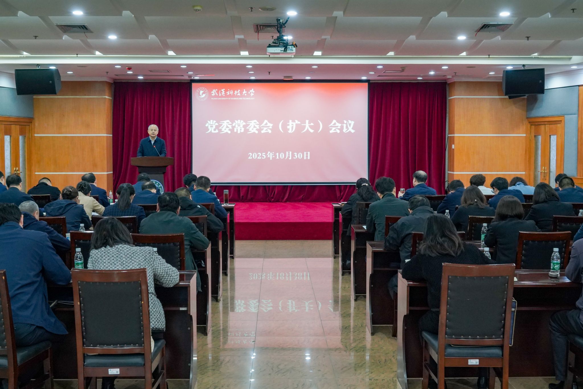 武科大网讯 10月30日上午,学校党委常委会召开扩大会议,传达学习党的二十届四中全会精神,部署我校学习宣传贯彻工作。校党委书记倪红卫主持会议并讲话,校党委副书记、校长吕勇传达党的二十届四中全会精神。全体校领导出席会议。