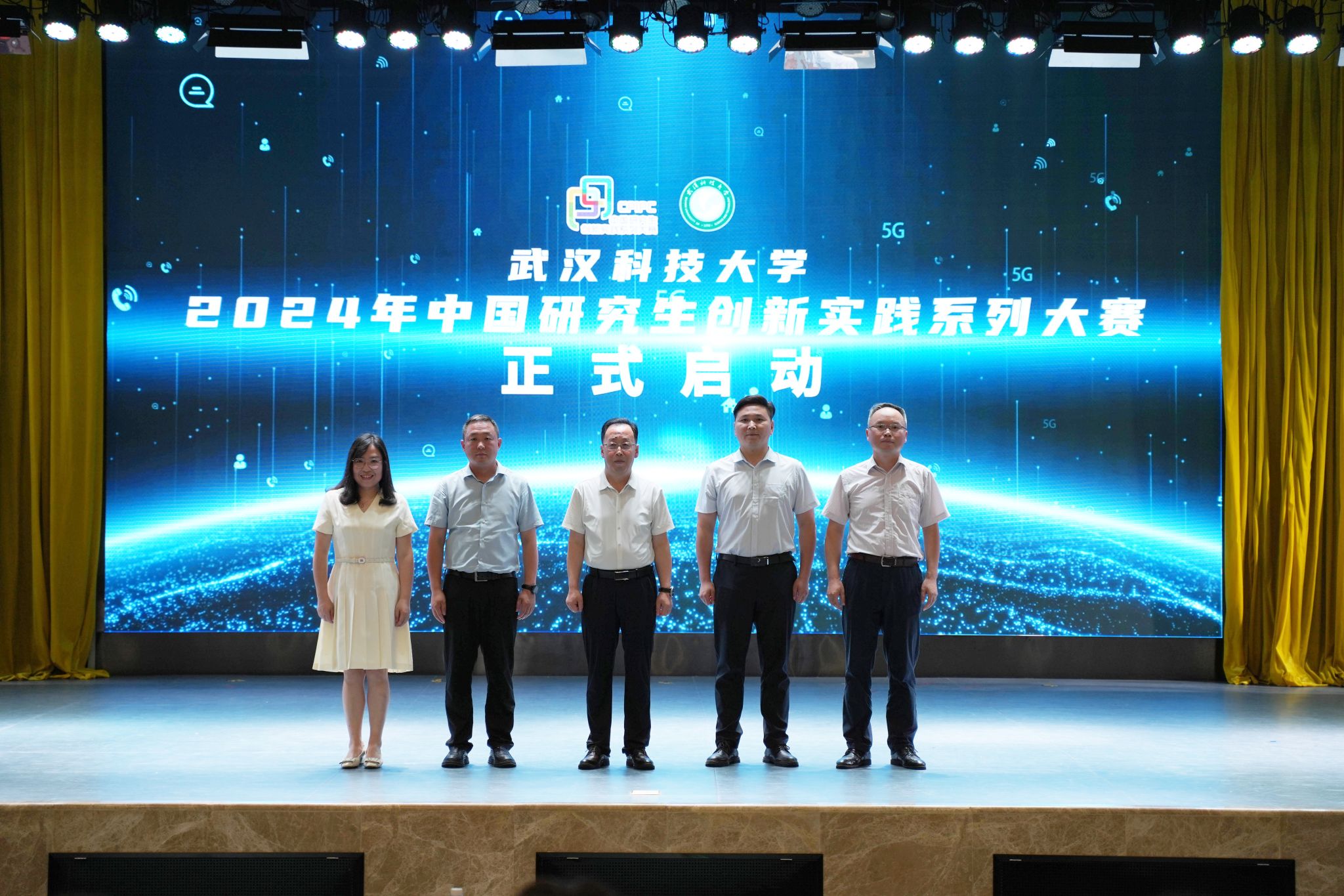 马腾、陈文思、汪汝武、毛宝胜、徐虹共同完成2024年度中国研究生创新实践系列大赛启动仪式。