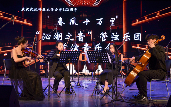 4月6日下午,我校“沁湖之音”管弦乐团于千人礼堂举行春风十万里“沁湖之音”音乐节首场演出,先后为观众带来西洋管弦乐、民乐合奏以及西洋室内乐,包括《第二圆舞曲》、《弦乐小夜曲-K525》和《黄河颂》等共计十首经典曲目,吸引了我校大量师生前来观看,现场观众不乏退休教职工以及教职工子女。7日,武汉科技大学“沁湖之音”管弦乐团特于千人礼堂举办“沁湖之音”音乐节。参加音乐节的有“沁湖之音”管弦乐团、指挥汪裕智、特邀的各位乐手、顾问孙国胜老师以及各位校领导与同学们。(熊雄 杨佳伟)