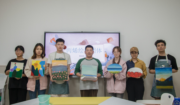 4月14日,丙烯绘画团体表达活动于武汉科技大学黄家湖校区心理健康中心愈心陶绘室举办。参与活动的有罗思宇老师和报名参加的同学们。活动开始时,罗思宇老师组织同学们准备绘画工具并向同学们介绍如何进行丙烯绘画。活动过程中,同学们沉浸式绘画,画出了许多优秀的作品。活动最后,同学们和自己的作品进行合影留念。(杨佳伟)