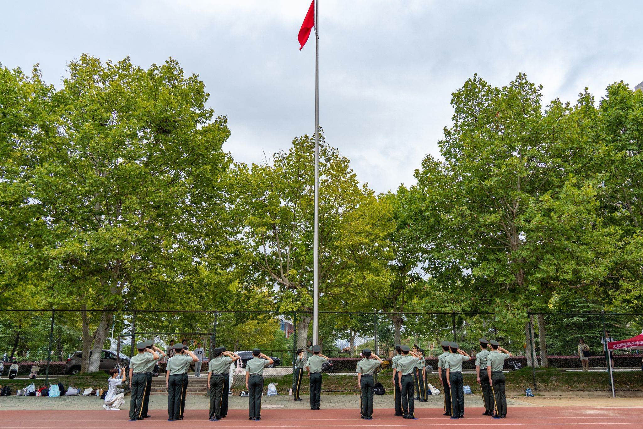 2025年9月18日上午,武汉科技大学南苑操场举行了庄严的升旗仪式。全校师生齐聚一堂,共同见证这一神圣时刻。仪式在雄壮的国歌声中拉开帷幕,五星红旗冉冉升起,全体师生肃立行注目礼,表达对祖国的无限热爱与崇敬。(王铭浩)