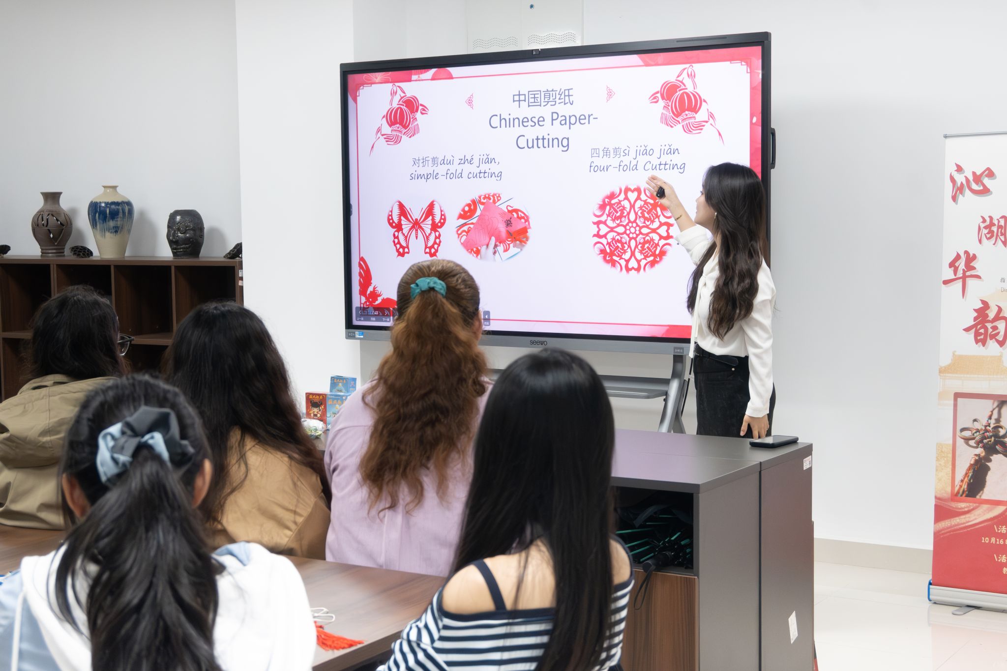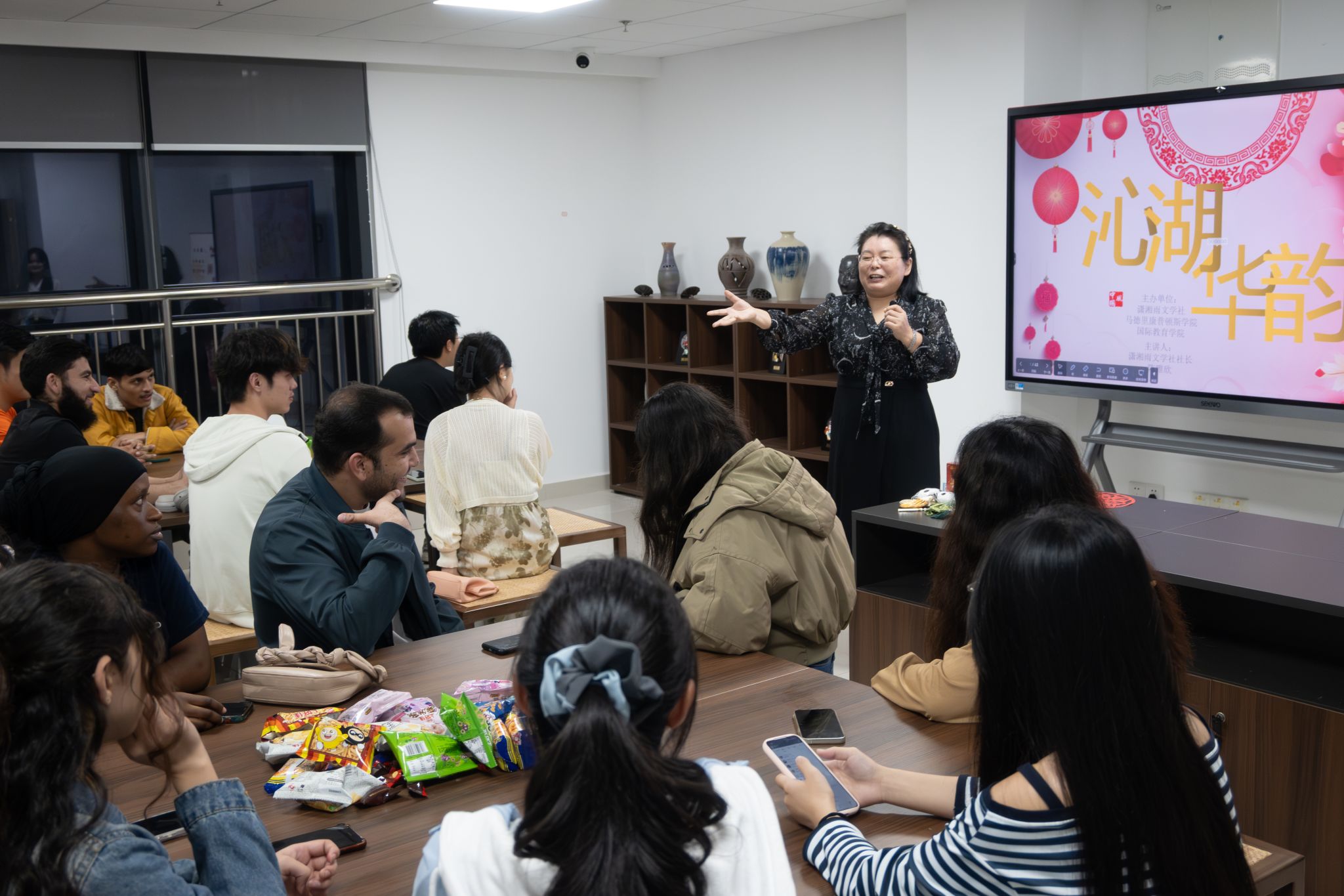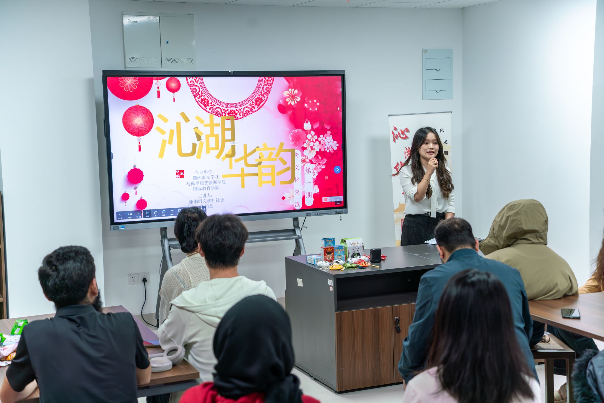 2025年10月16日晚,国际学院联合马德里康普顿斯学院、潇湘雨文学社共同于国际学院举办“沁湖华韵”跨文化交流沙龙。
