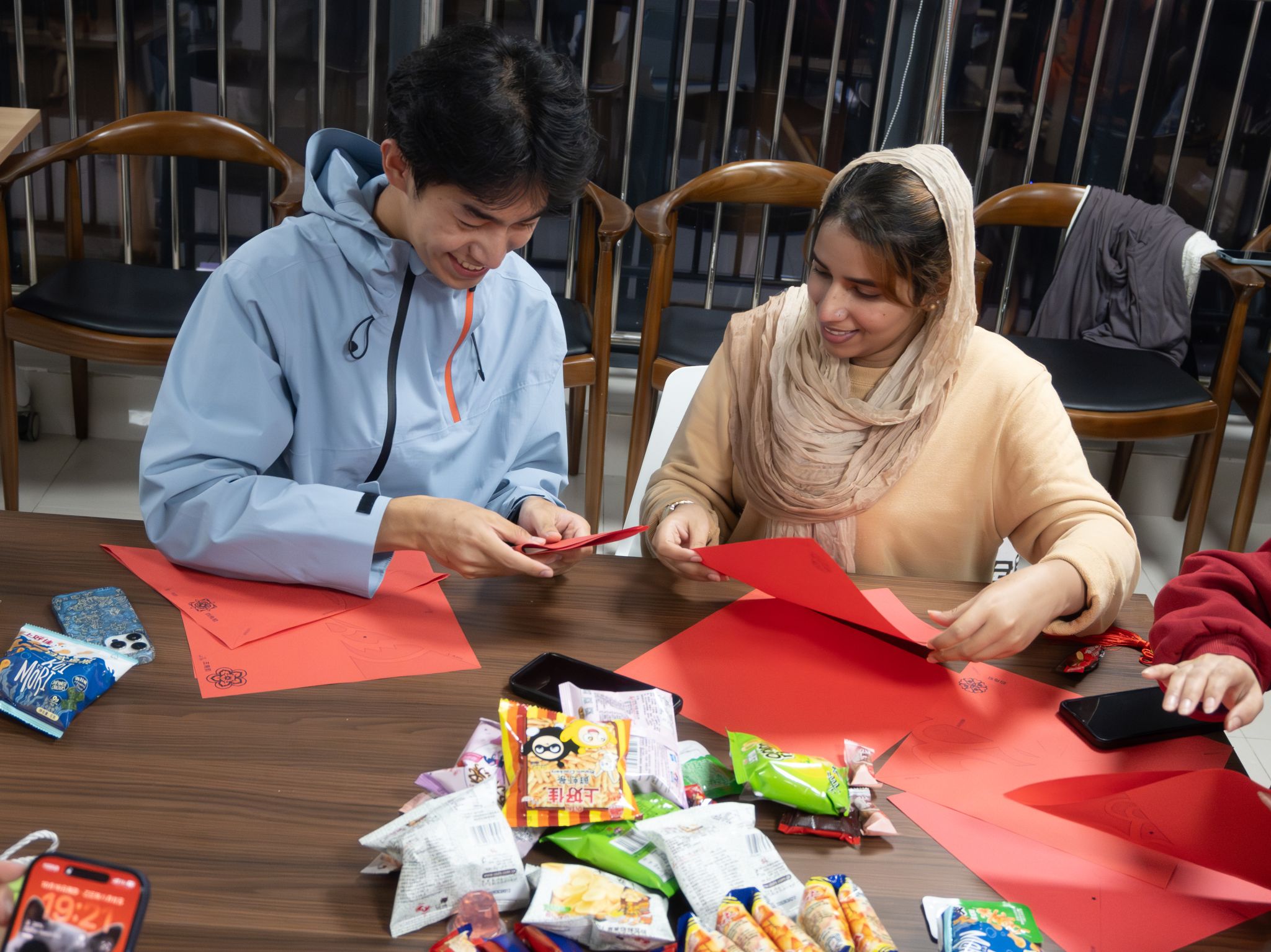 留学生和中国学生一起翻花绳 宋晓雅摄