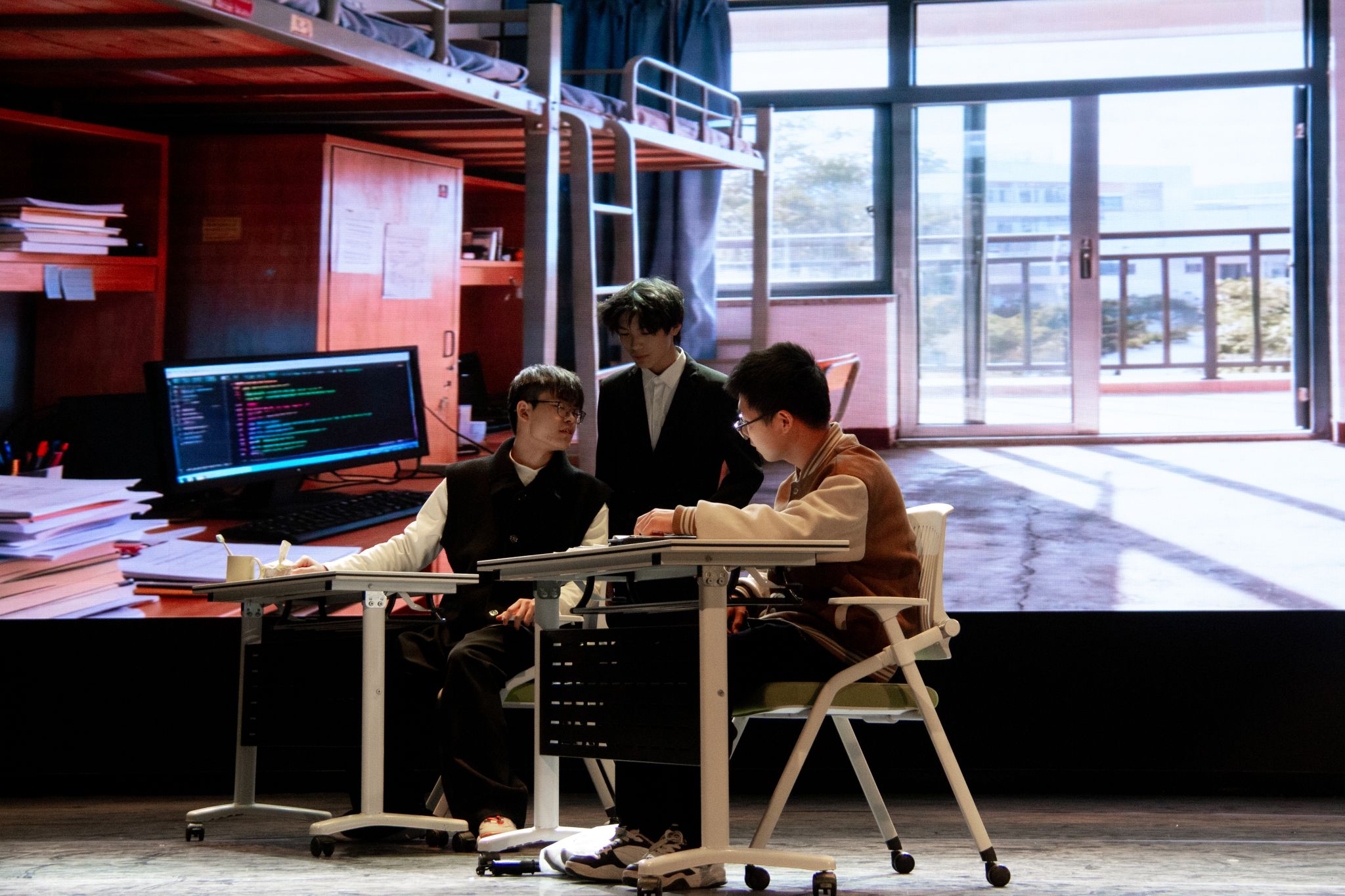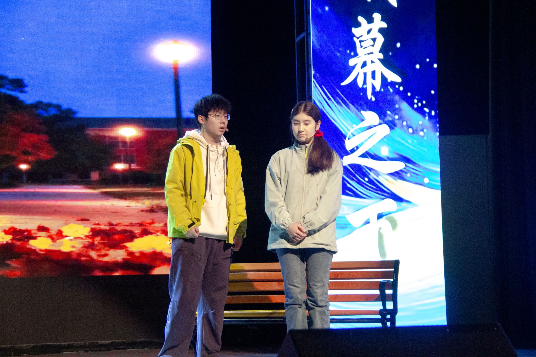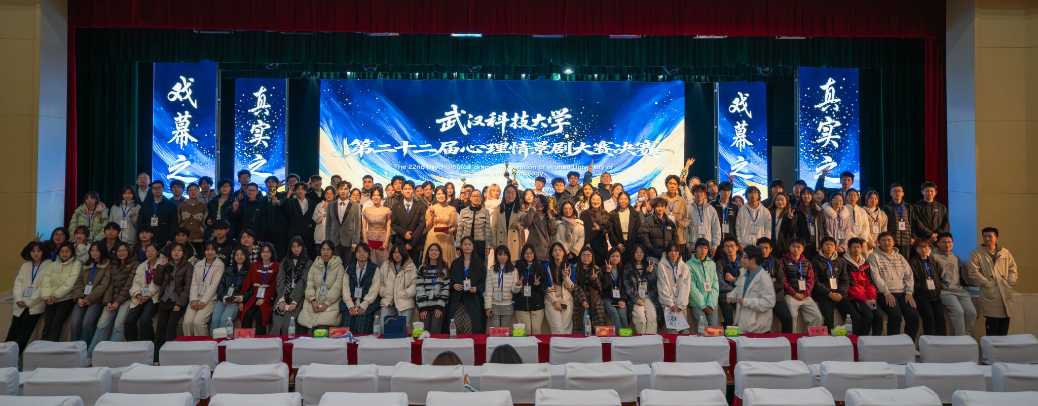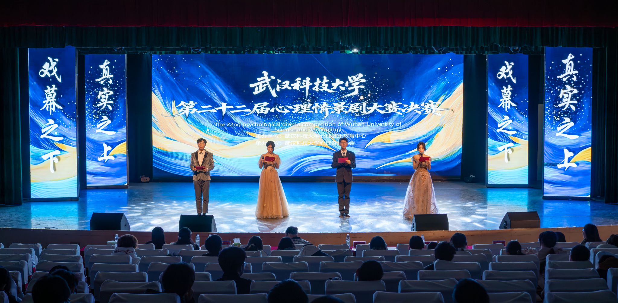 11月27日,我校“戏幕之下,真实之上”第二十二届心理情景剧大赛决赛在沁湖礼堂举行。来自医学部、机械工程学院、法学与经济学院、冶金与能源学院、外国语学院的6支参赛队伍入围决赛。决赛评出了一、二、三等奖、最佳男女主角奖、最佳编剧、导演奖。(孙正恒)