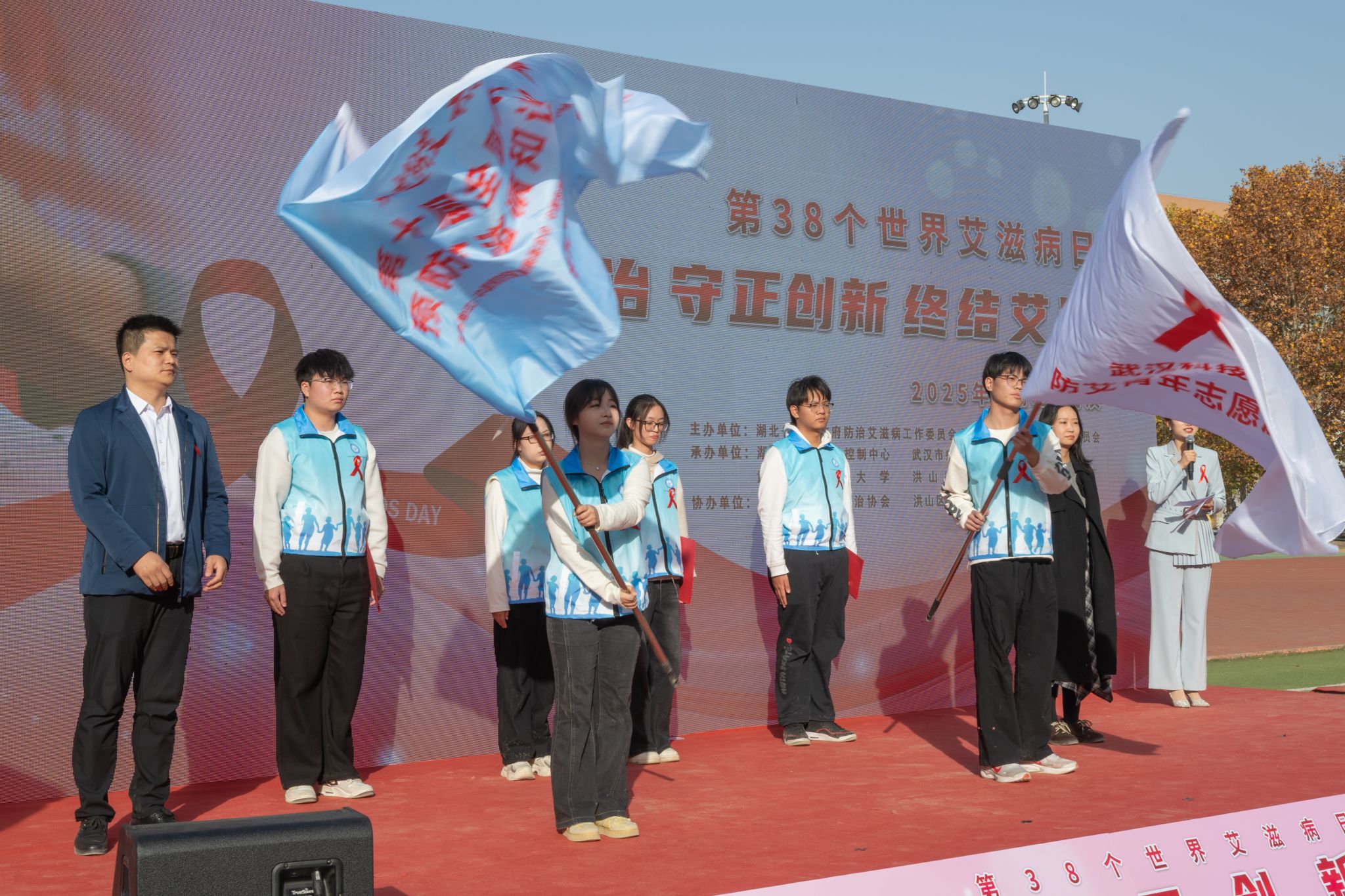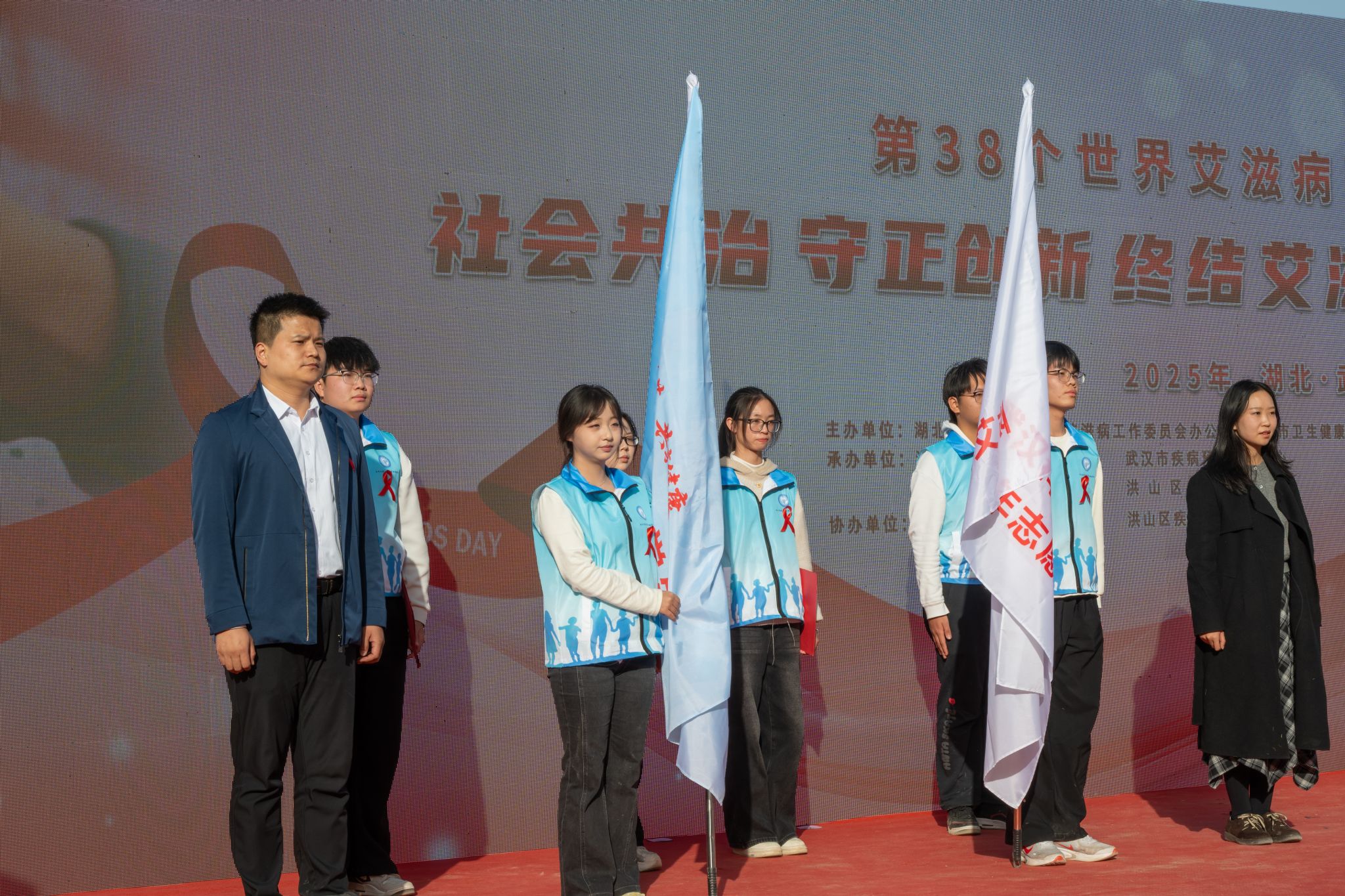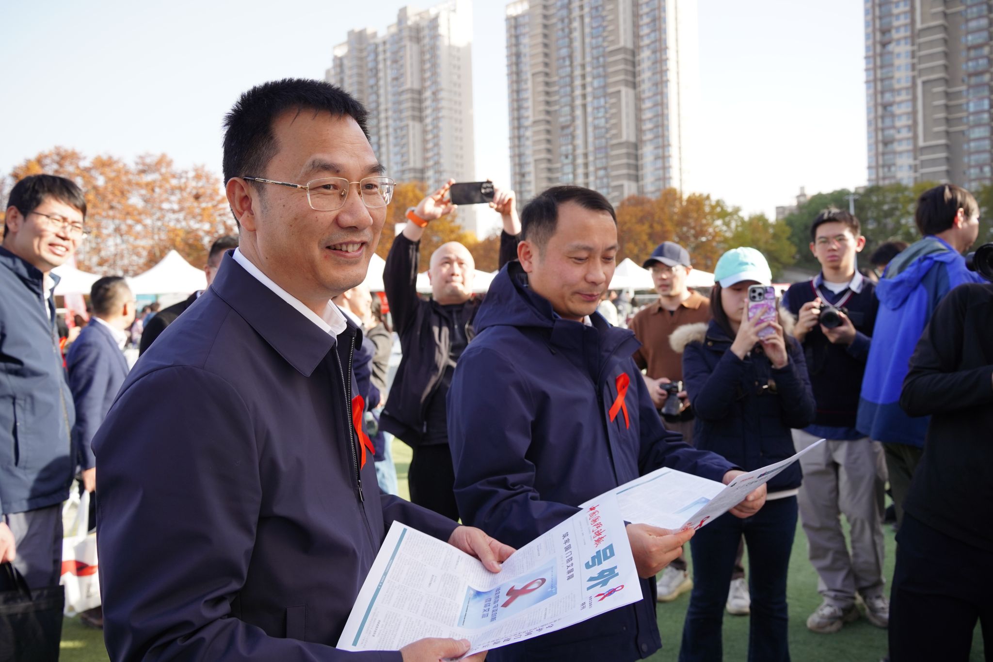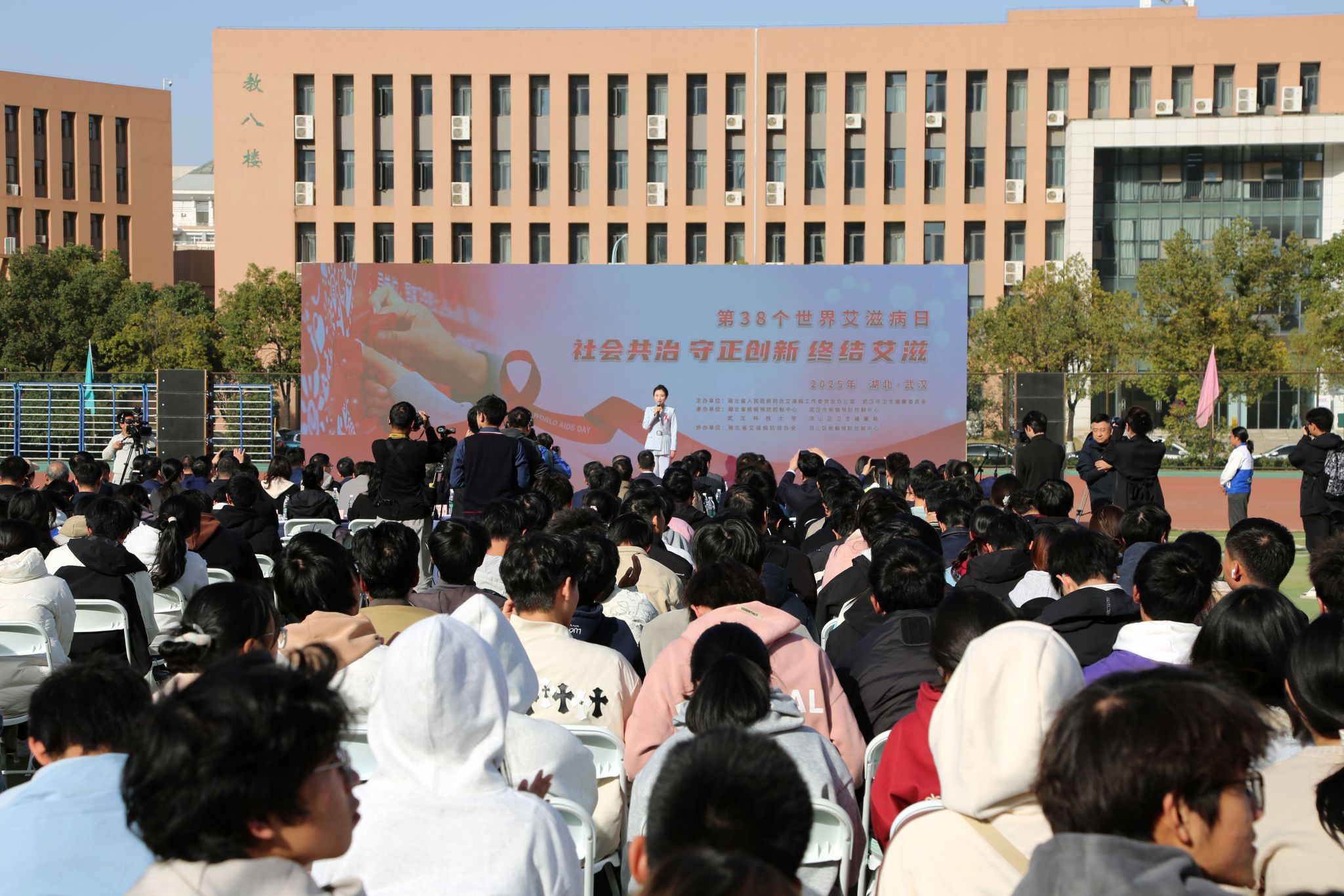 11月27日,湖北省第 38 个“世界艾滋病日”主题宣传活动在我校黄家湖校区南区体育场举办。我校、市卫健委、省政府防艾办和其他相关单位负责人参加启动仪式。启动仪式后,高校学生代表宣读倡议书,团省委、团市委为志愿者授旗。湖北省疾病预防控制中心等单位、企业在现场搭建展台,为师生们答疑解惑、提供健康建议。(孙正恒)