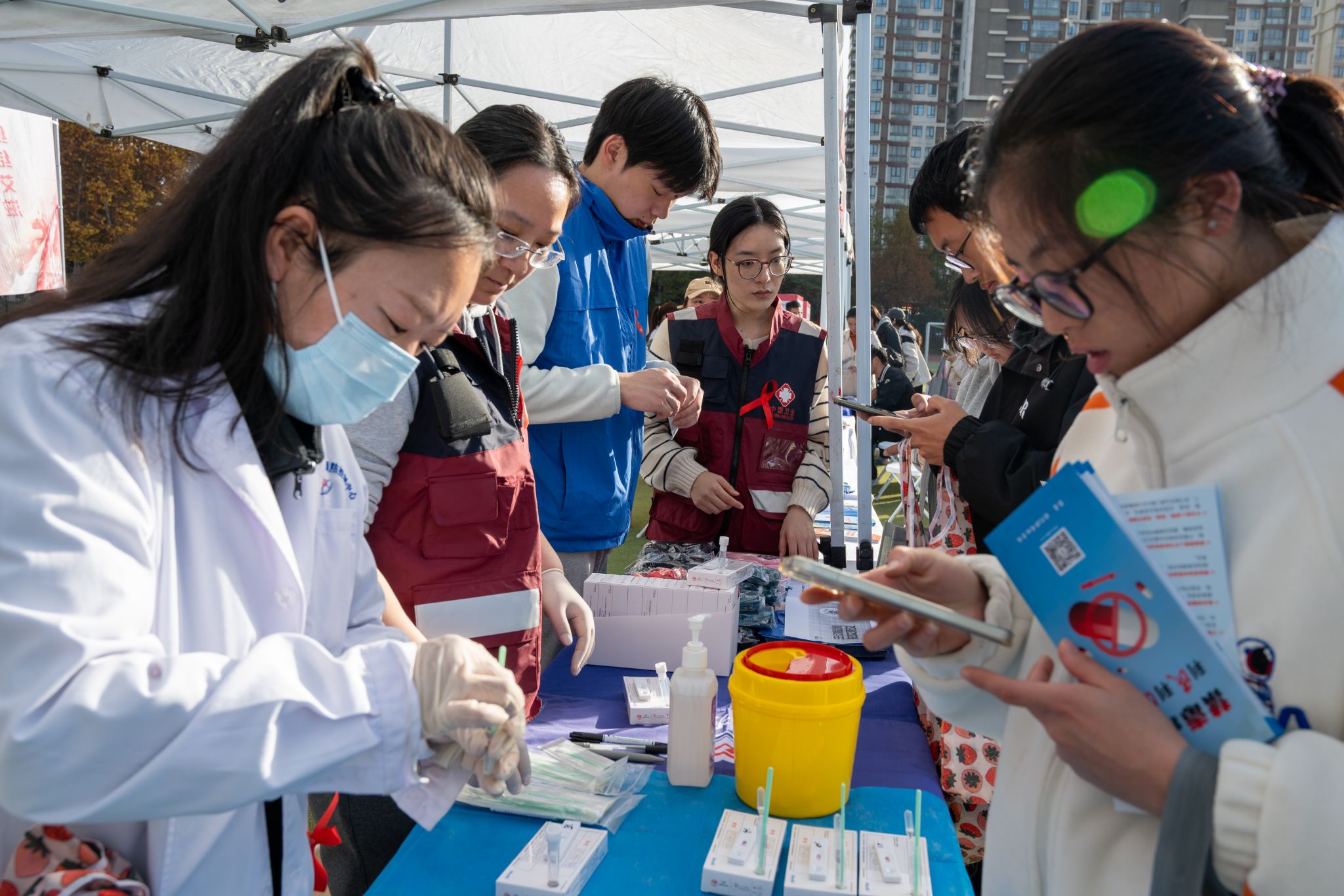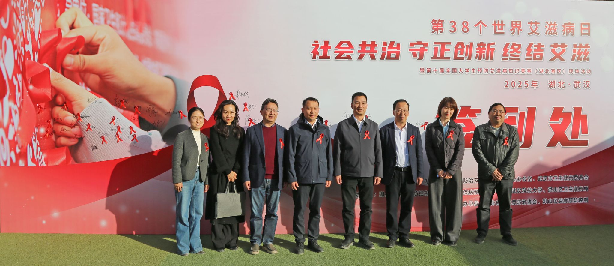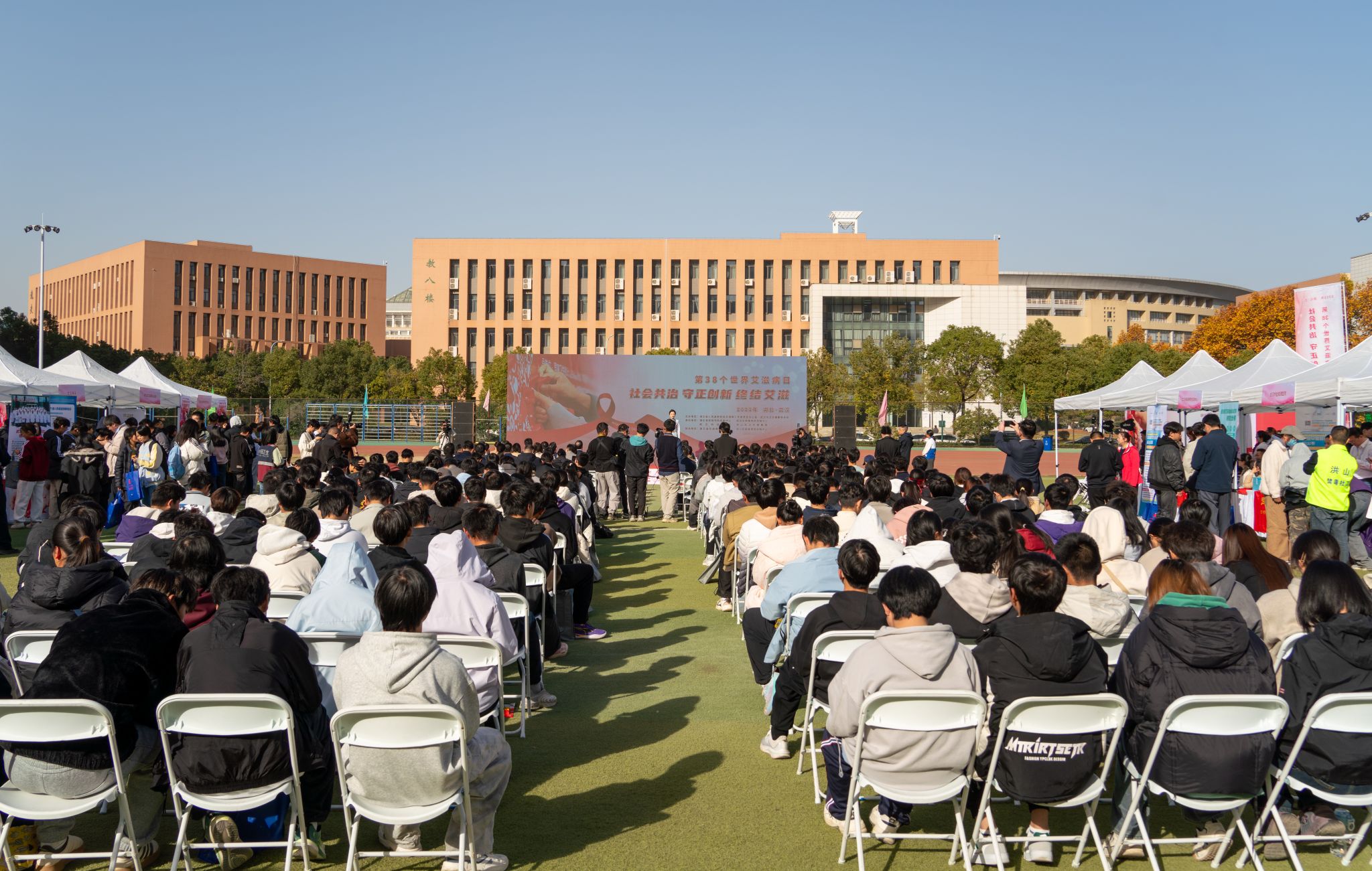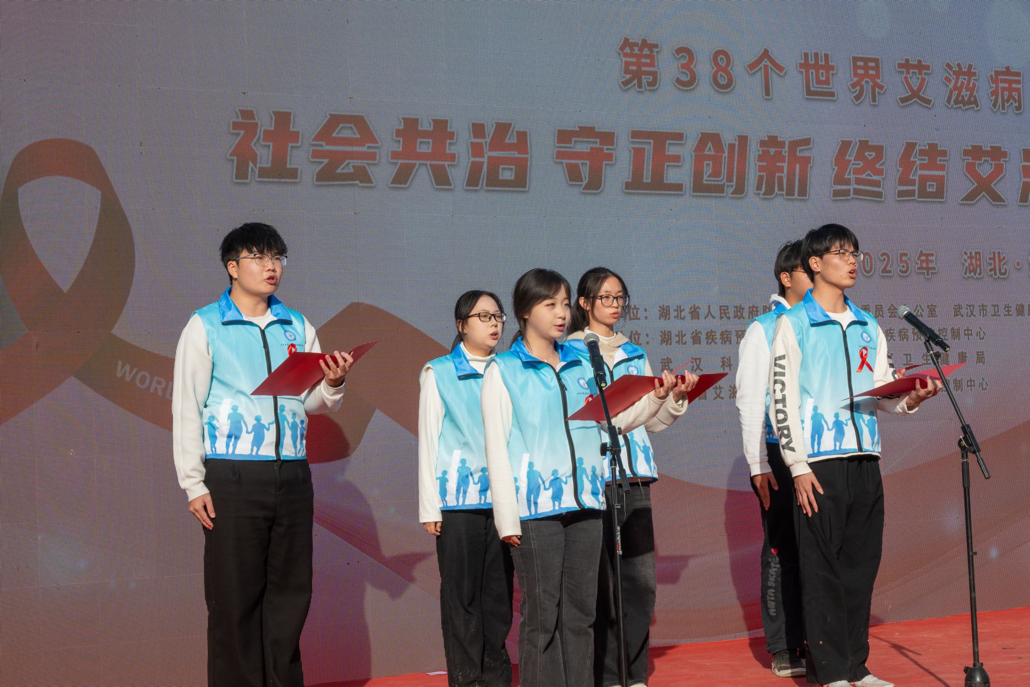 11月27日,湖北省第 38 个“世界艾滋病日”主题宣传活动在我校黄家湖校区南区体育场举办。我校、市卫健委、省政府防艾办和其他相关单位负责人参加启动仪式。启动仪式后,高校学生代表宣读倡议书,团省委、团市委为志愿者授旗。湖北省疾病预防控制中心等单位、企业在现场搭建展台,为师生们答疑解惑、提供健康建议。(孙正恒)