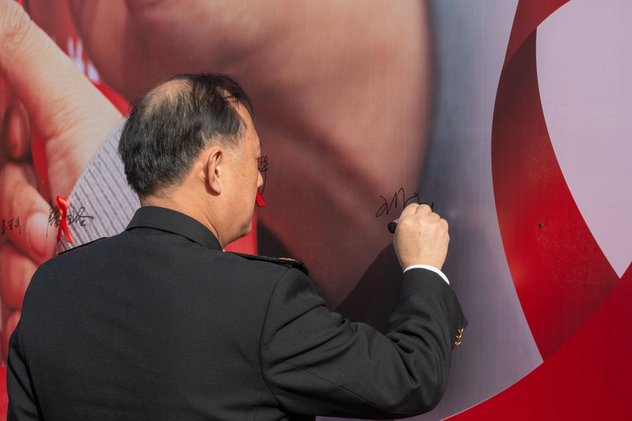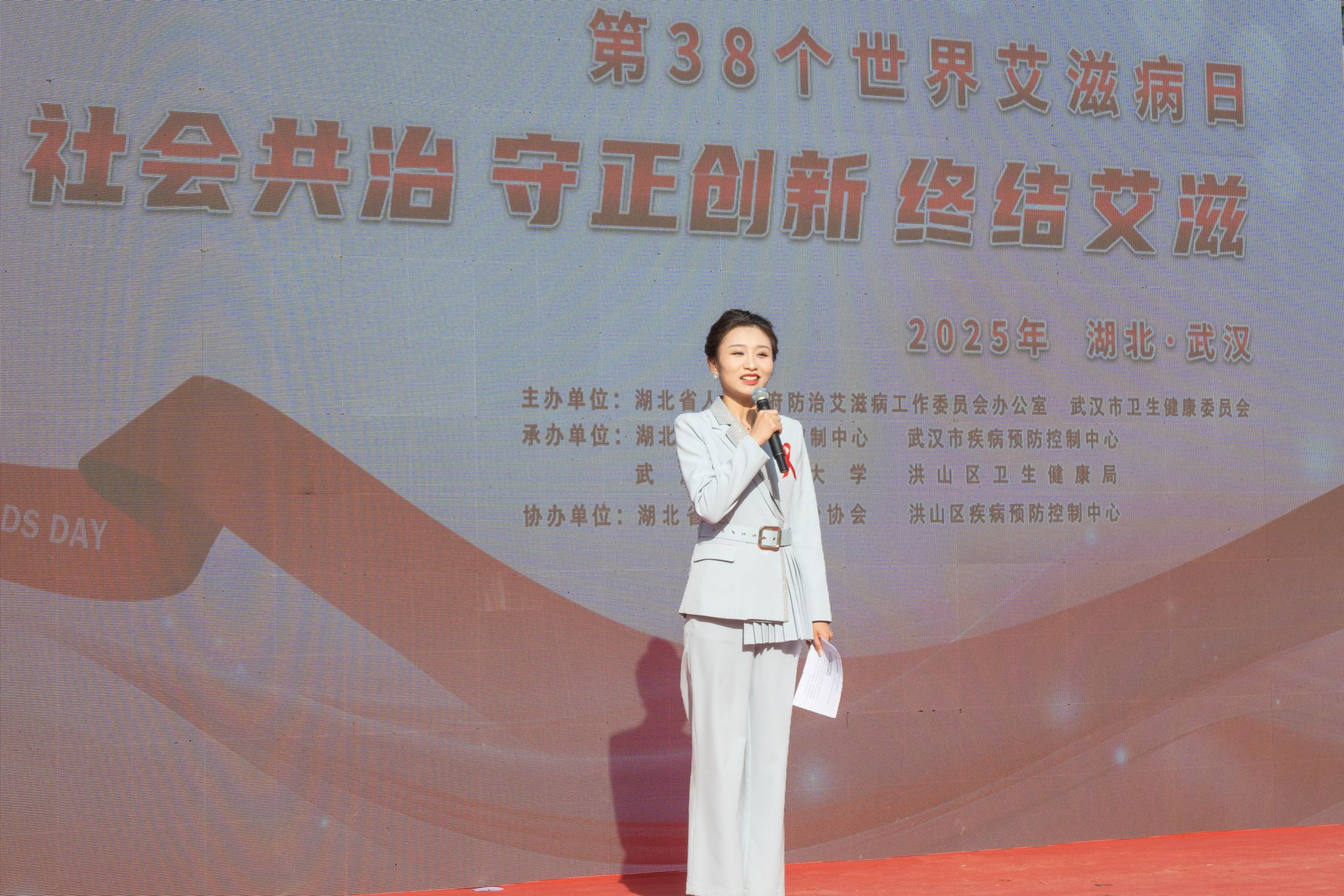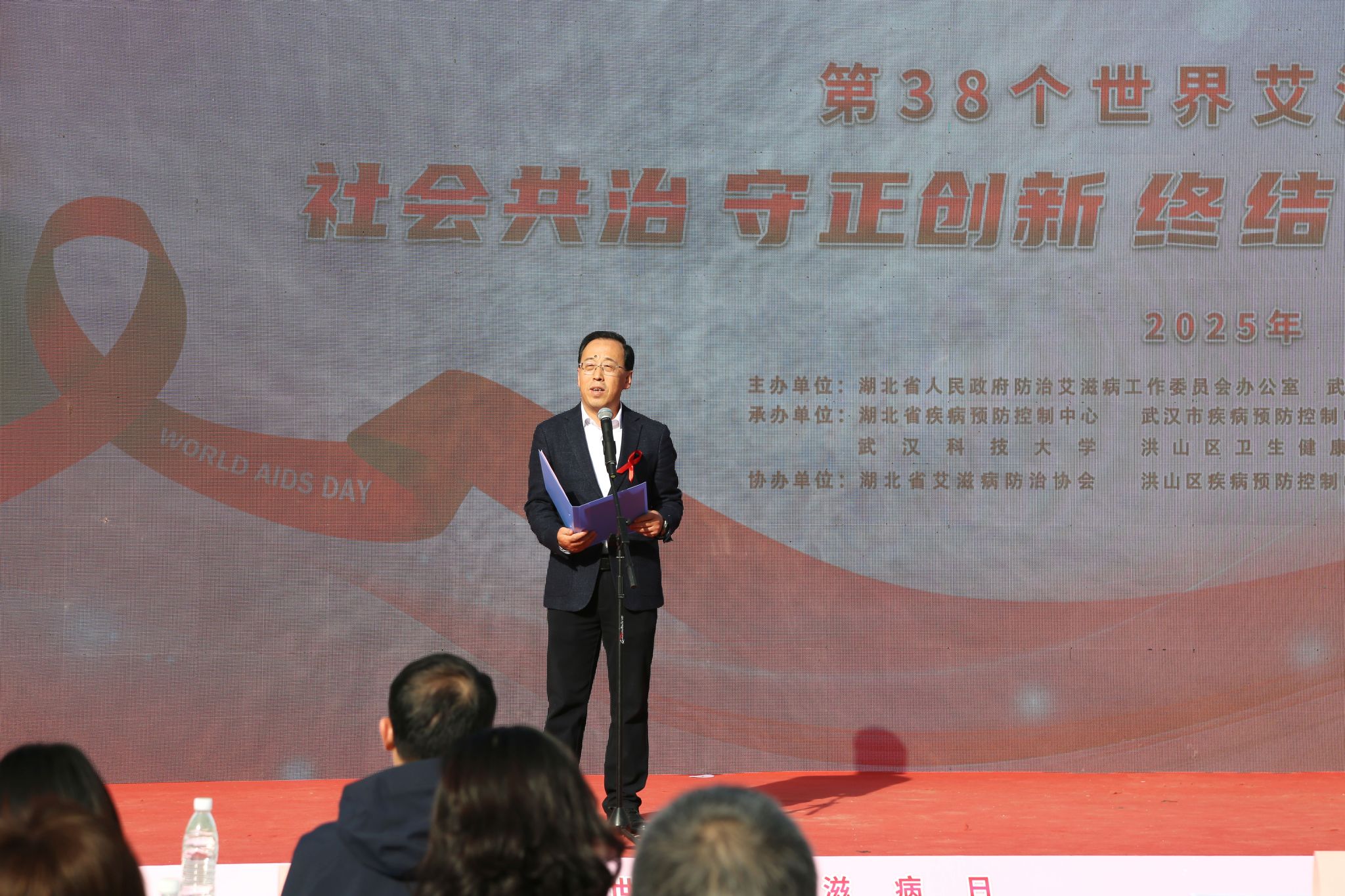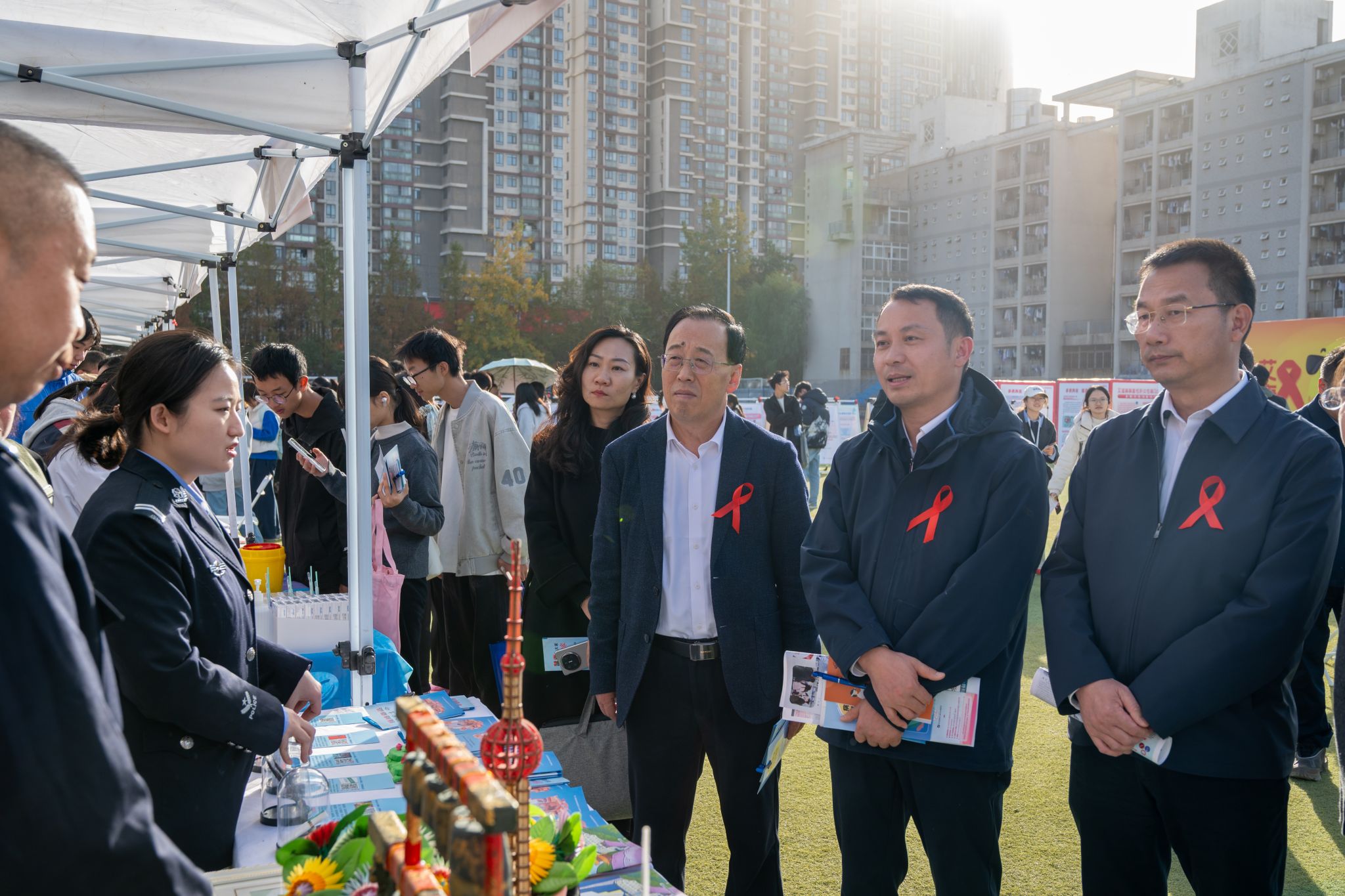 11月27日,湖北省第 38 个“世界艾滋病日”主题宣传活动在我校黄家湖校区南区体育场举办。我校、市卫健委、省政府防艾办和其他相关单位负责人参加启动仪式。启动仪式后,高校学生代表宣读倡议书,团省委、团市委为志愿者授旗。湖北省疾病预防控制中心等单位、企业在现场搭建展台,为师生们答疑解惑、提供健康建议。(孙正恒)