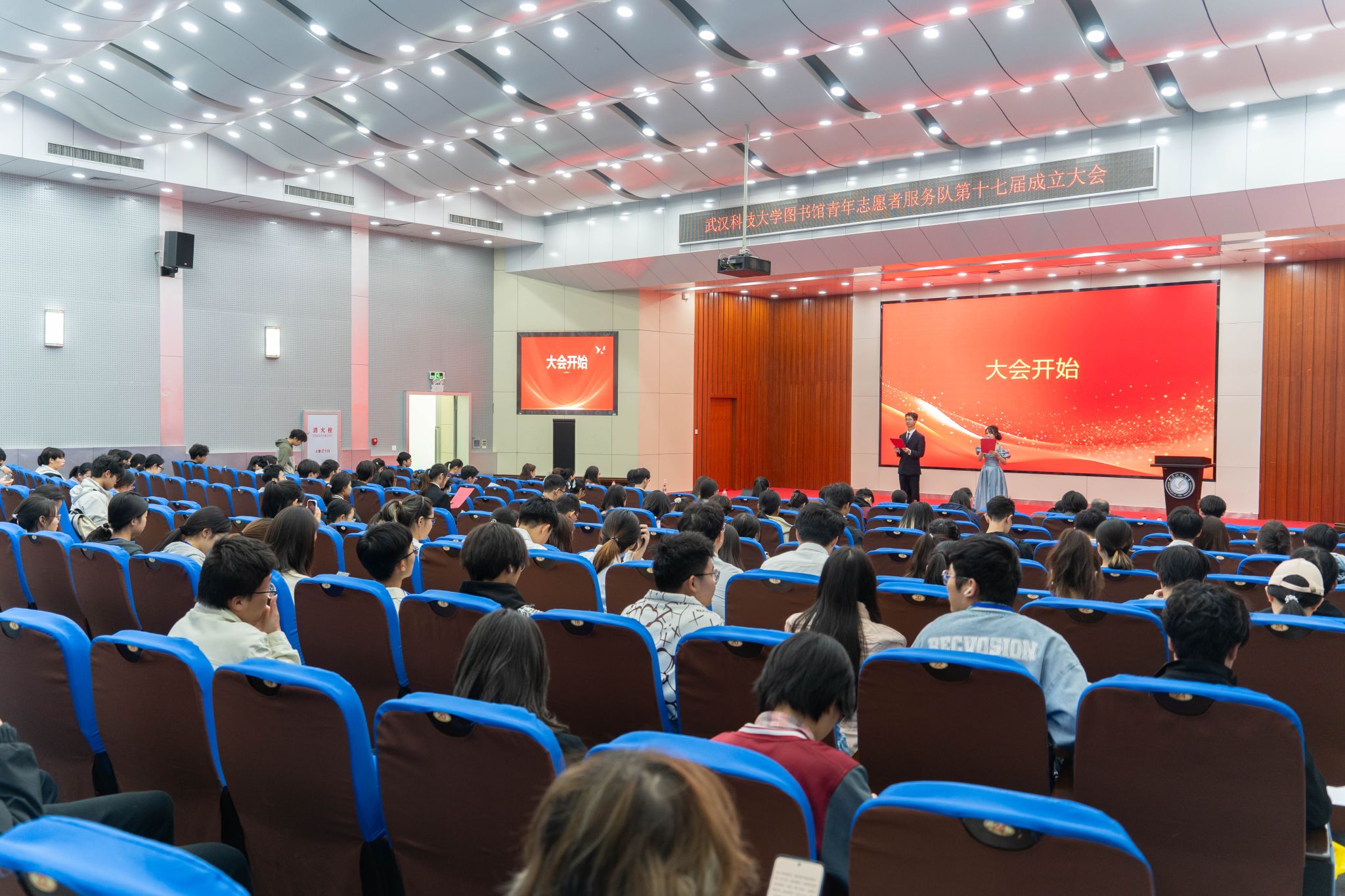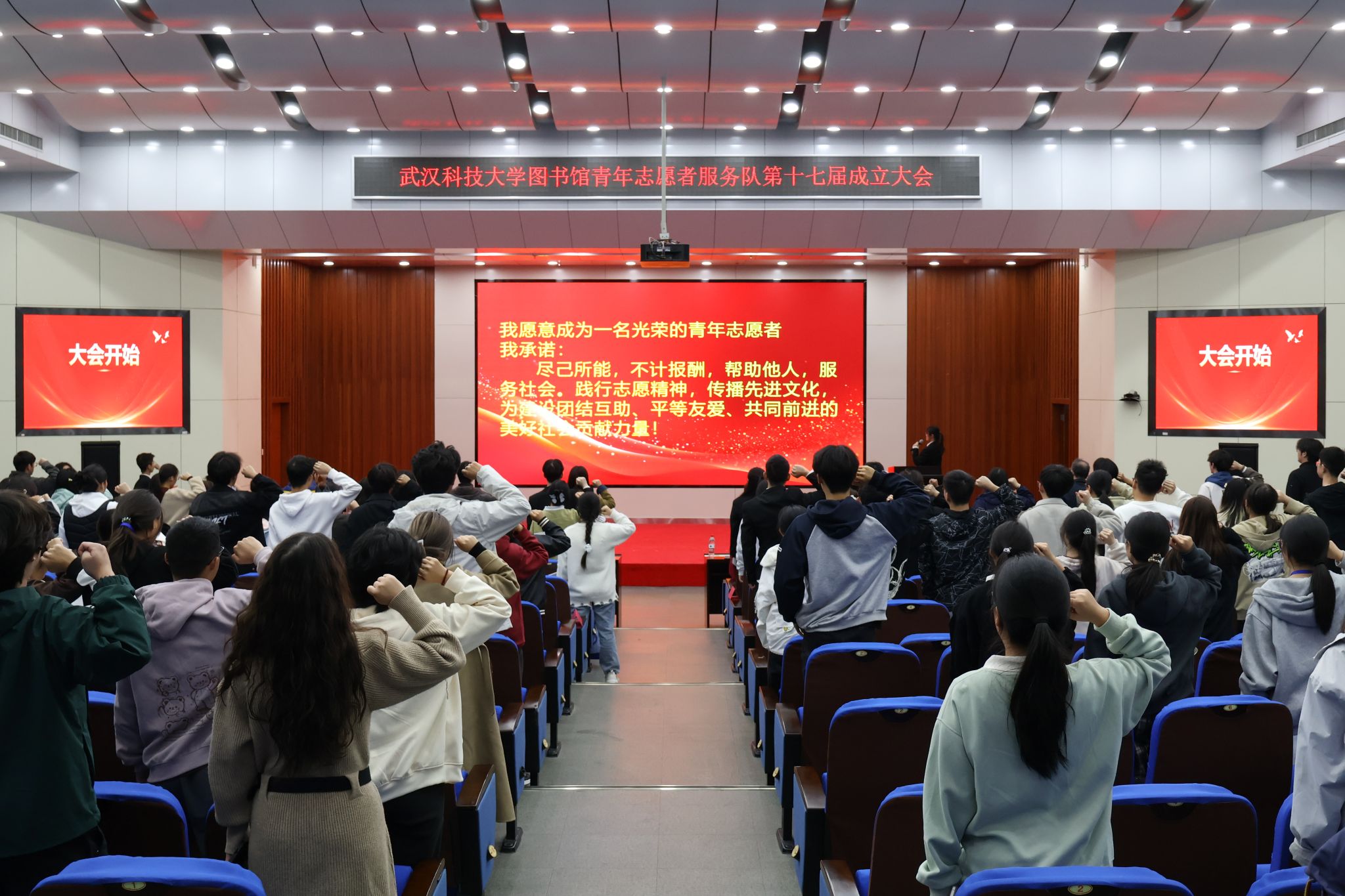 我校第十七届图书馆青年志愿者服务队成立大会在崇实会堂举行。