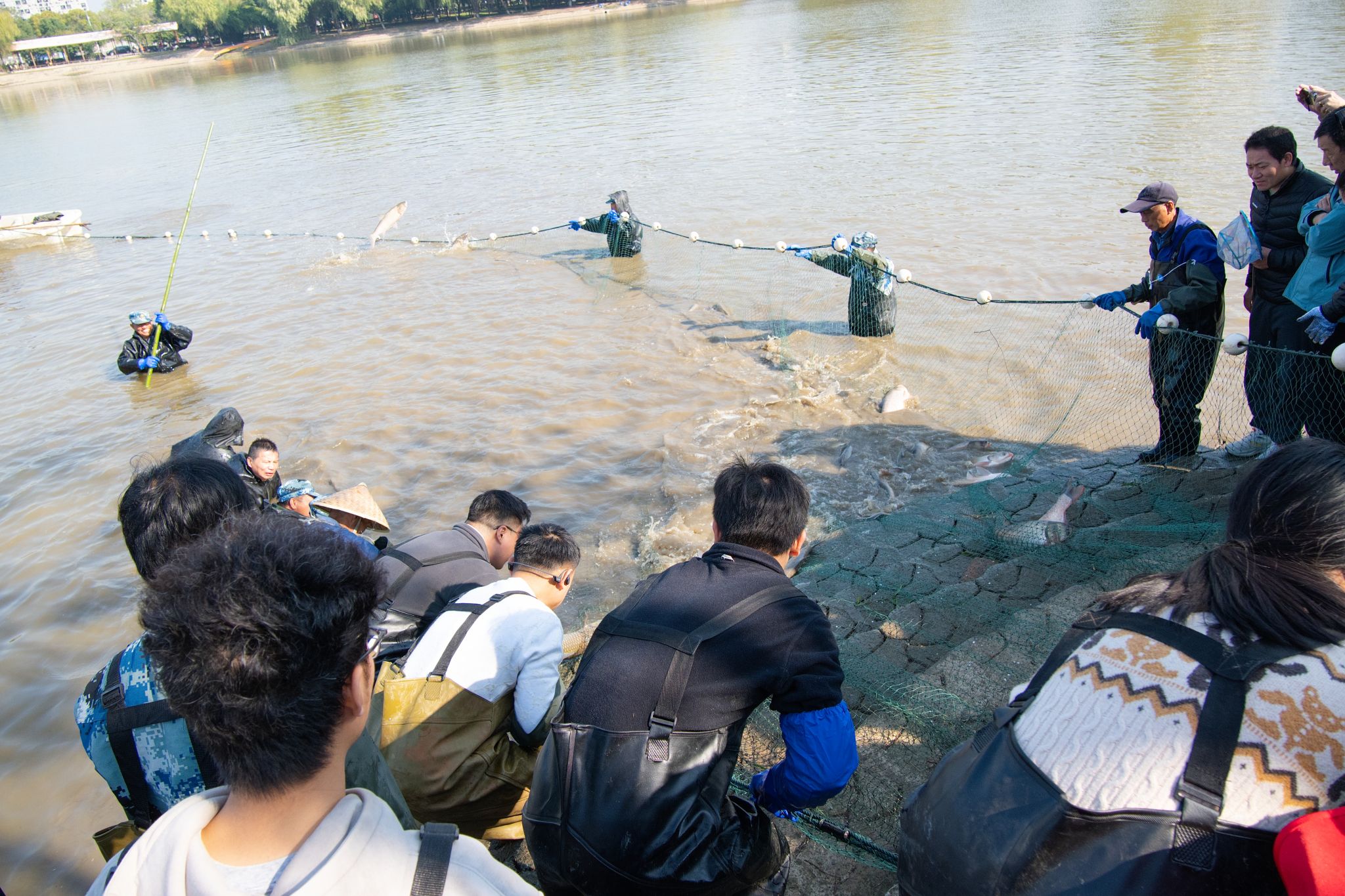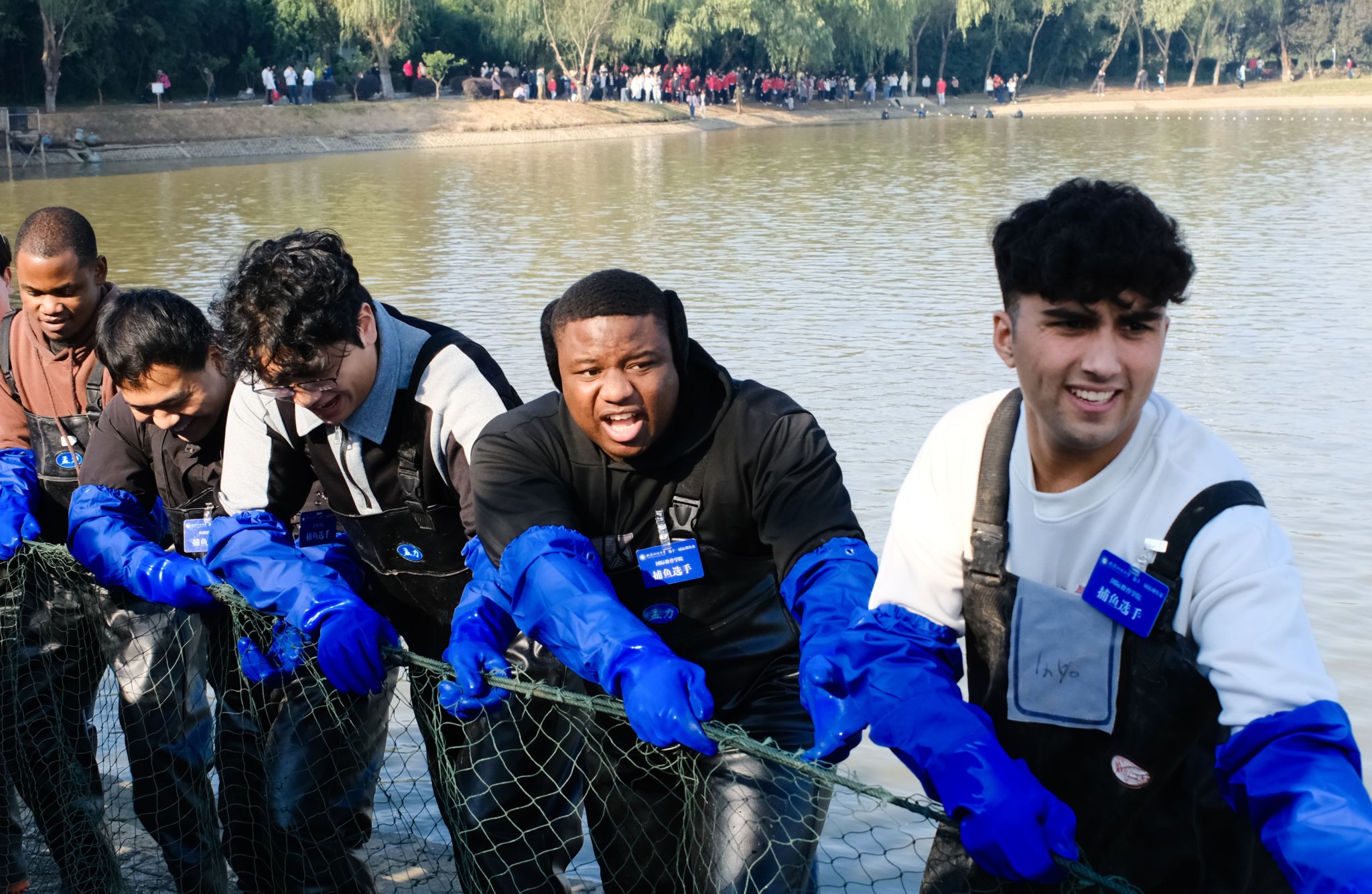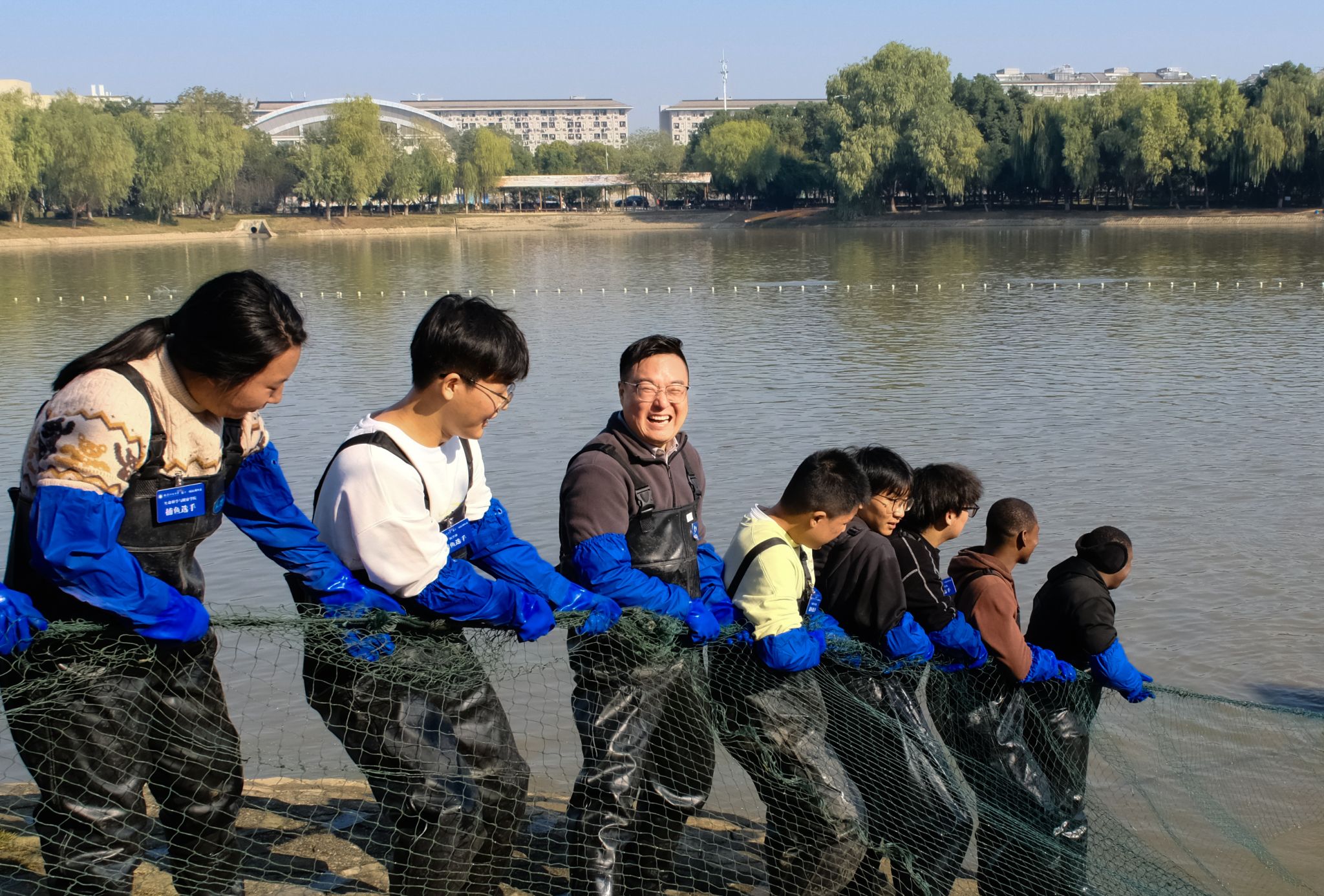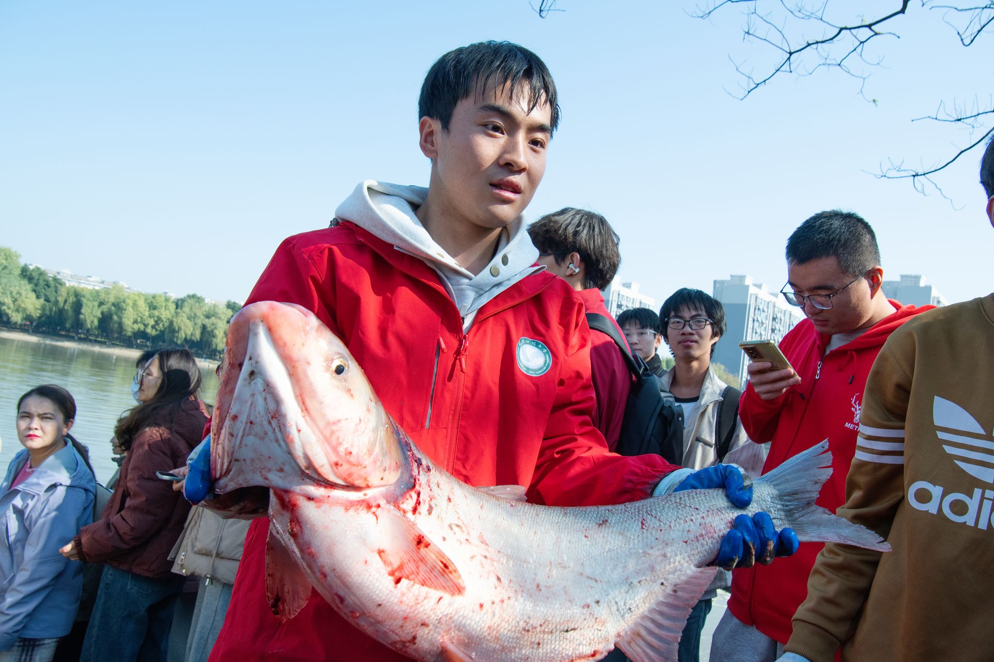 11月21日,我校举办第十一届“沁湖鱼宴”。本次活动的主题为”'鱼'你同心 共创一流“。在沁湖沿岸指定区域,中外学生与职工代表一起拉鱼、捕鱼。参加活动的师生其乐融融,活动展现出我校学子良好的精神风貌、传承了“厚德博学 崇实去浮”的校训精神,弘扬了“向上向美,力行力新”的沁湖文化。(孙正恒)
