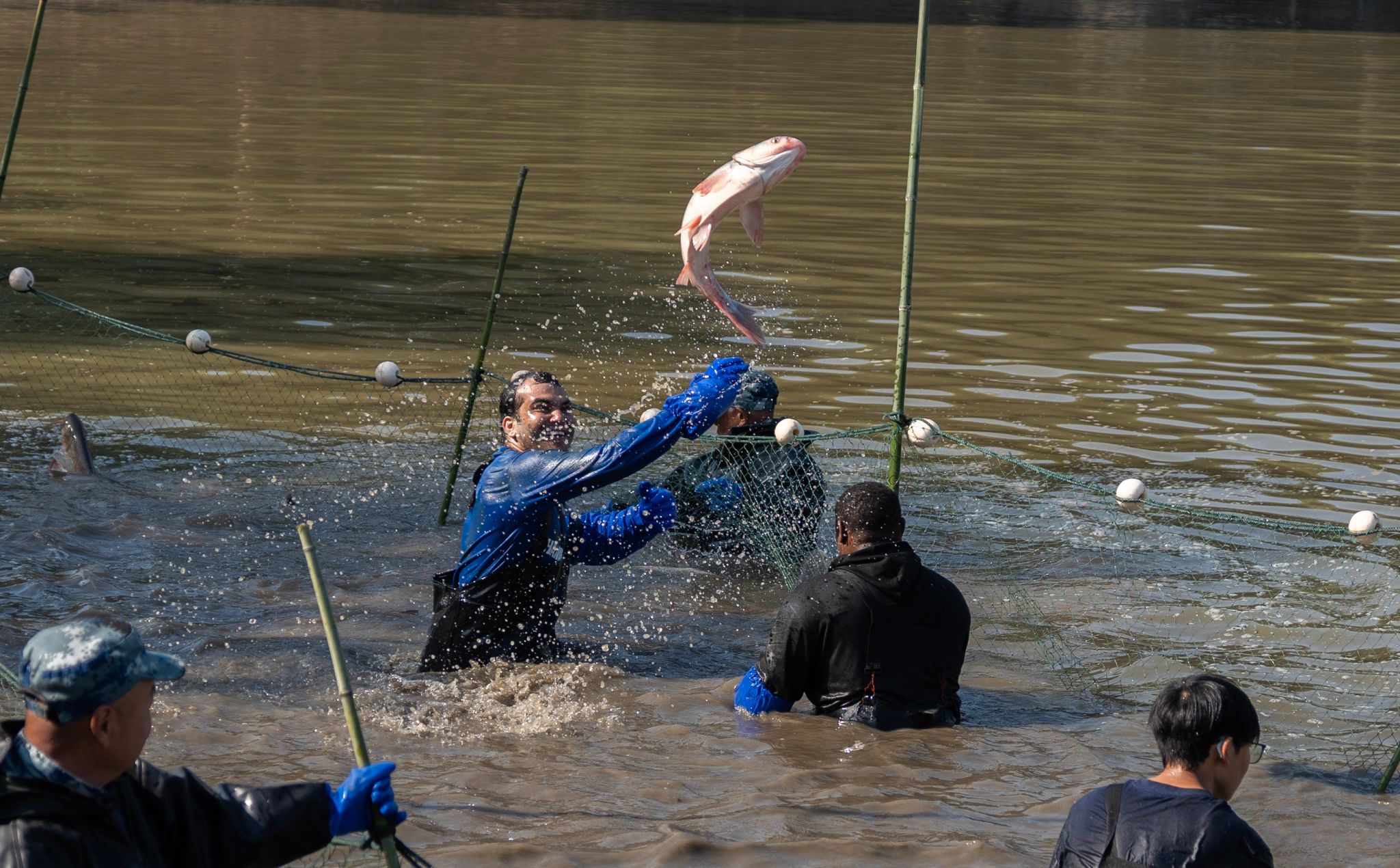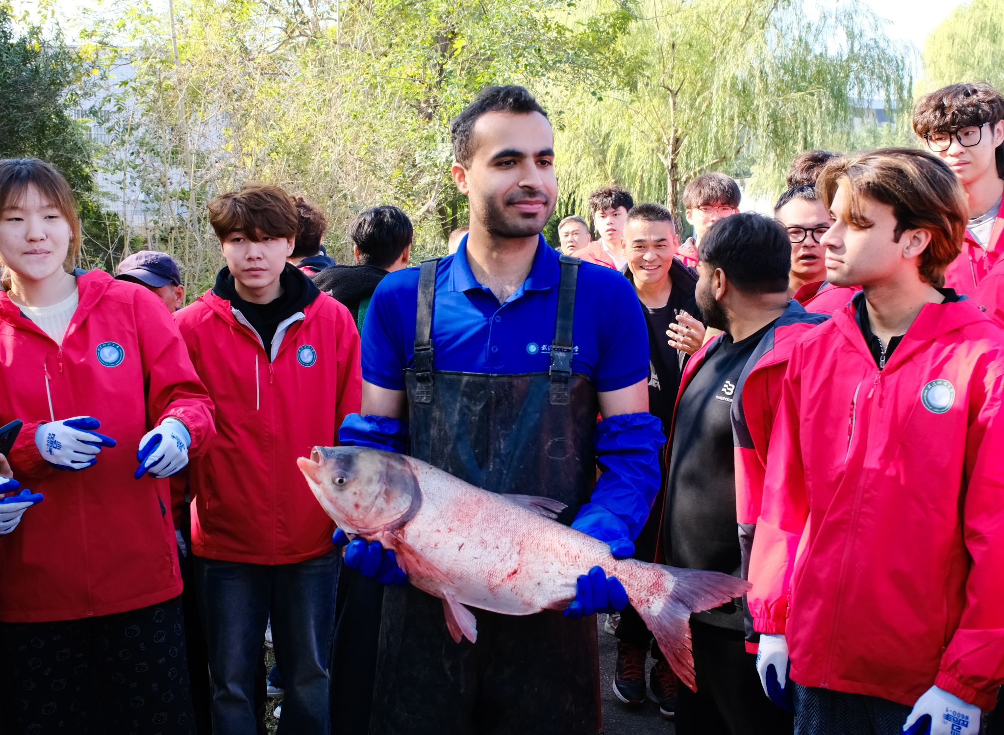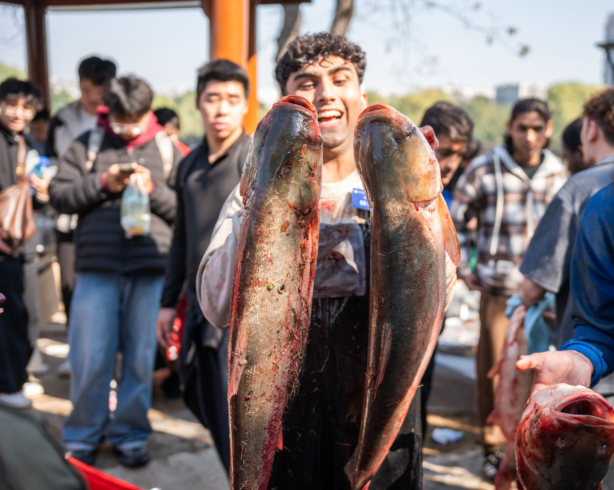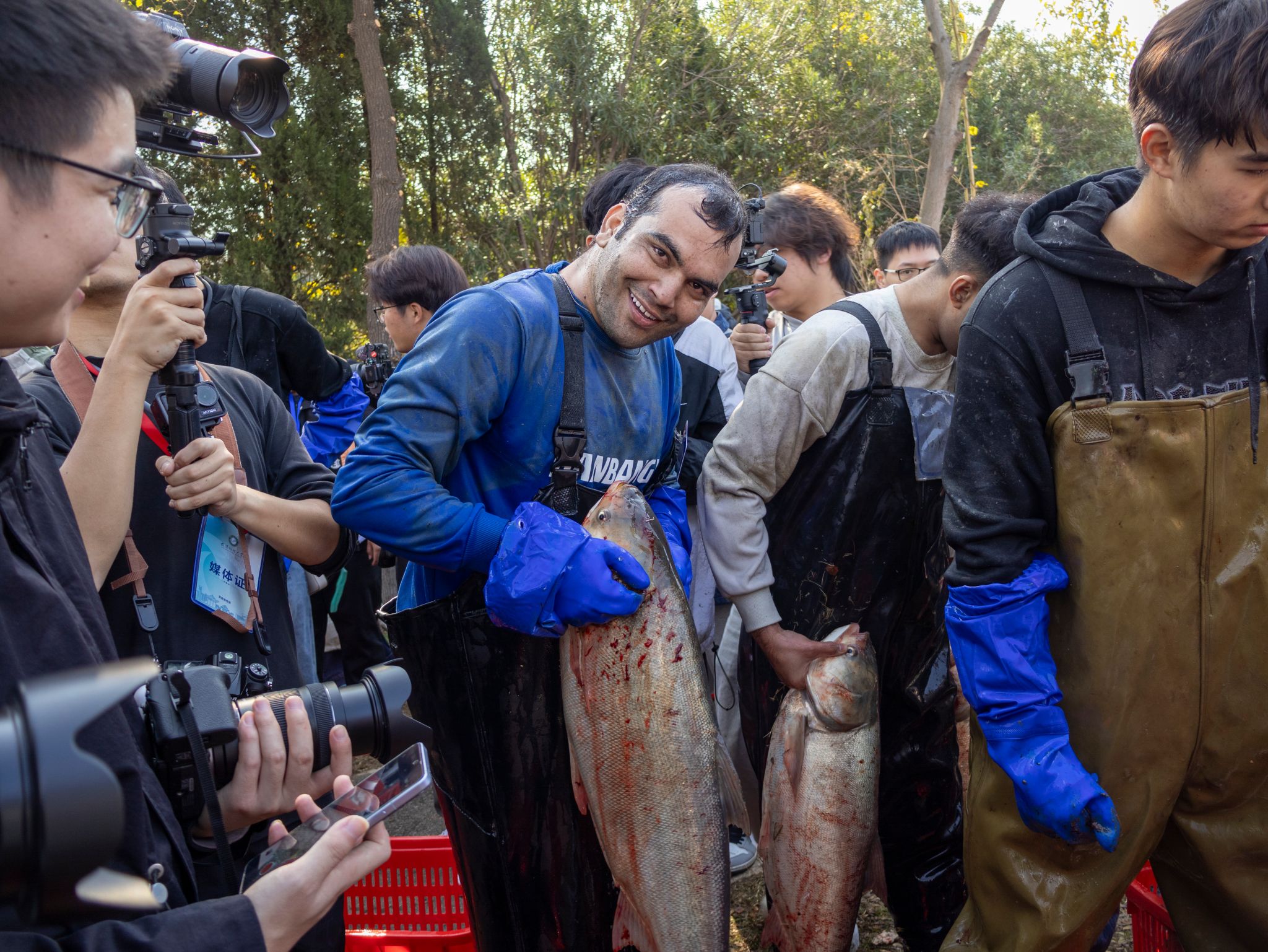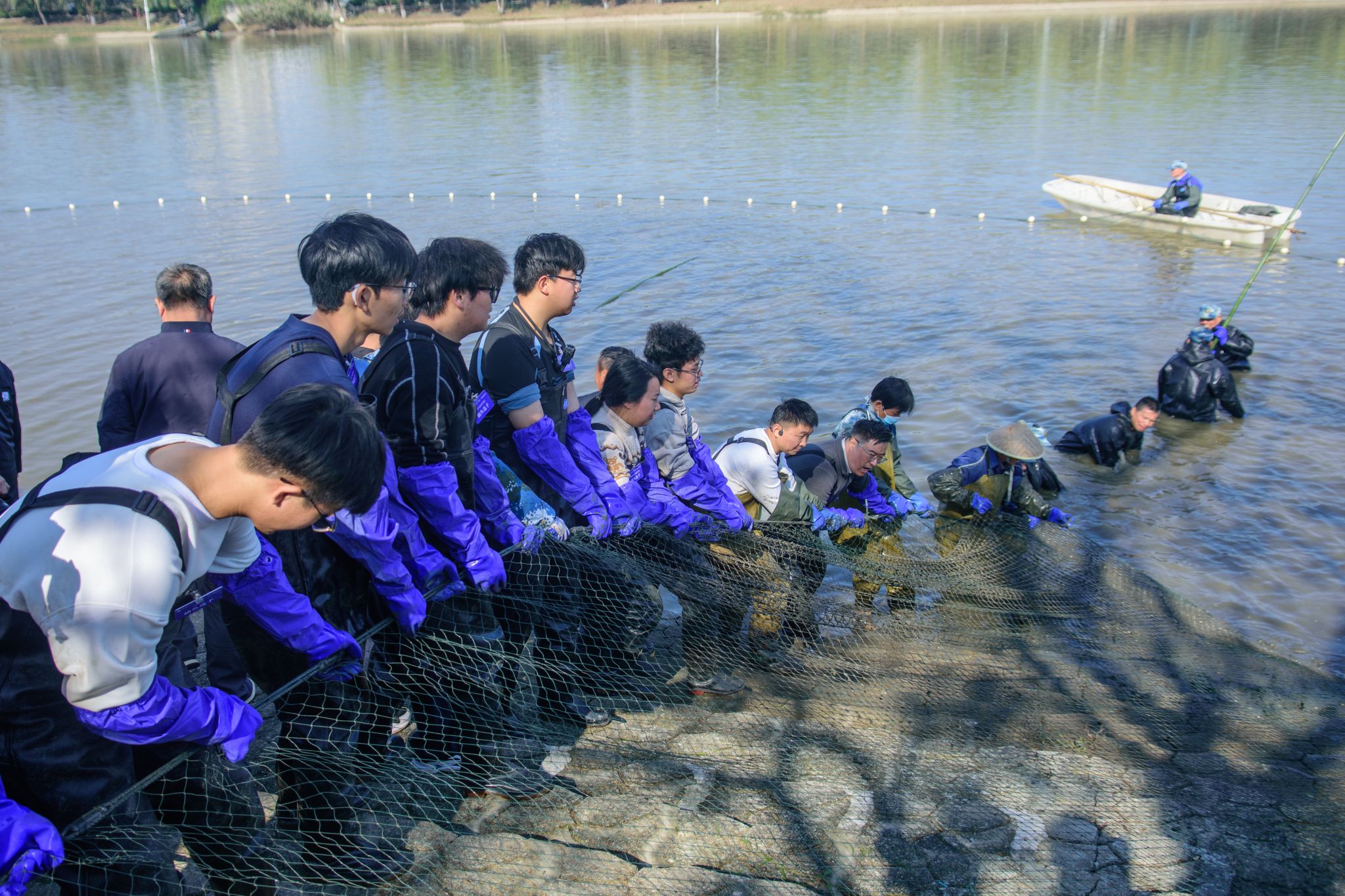 11月21日,我校举办第十一届“沁湖鱼宴”。本次活动的主题为”'鱼'你同心 共创一流“。在沁湖沿岸指定区域,中外学生与职工代表一起拉鱼、捕鱼。参加活动的师生其乐融融,活动展现出我校学子良好的精神风貌、传承了“厚德博学 崇实去浮”的校训精神,弘扬了“向上向美,力行力新”的沁湖文化。(孙正恒)