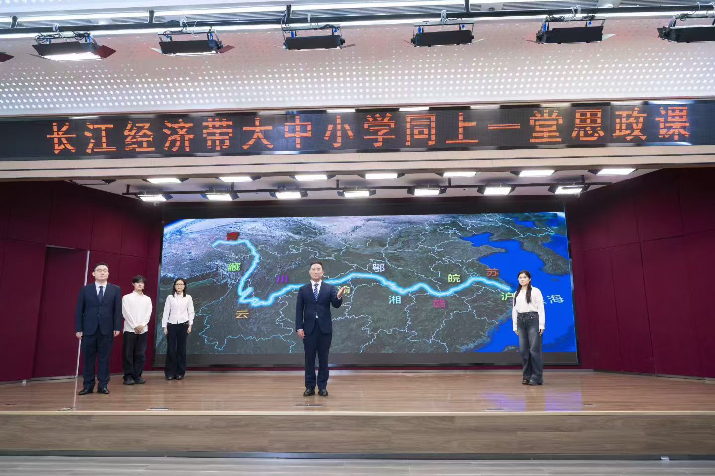 今年是习近平总书记主持召开推动长江经济带发展座谈会十周年和学校思想政治理论课教师座谈会召开七周年。在湖北、安徽、重庆、青海四地教育主管部门的指导下,华中师范大学、武汉科技大学、合肥市第一中学、合肥一六八中学、西南大学附属中学、西宁市博文学校、西宁市城西区虎台小学的师生代表同上一堂思政课,宣传展示传承长江文化。(马克思主义学院)