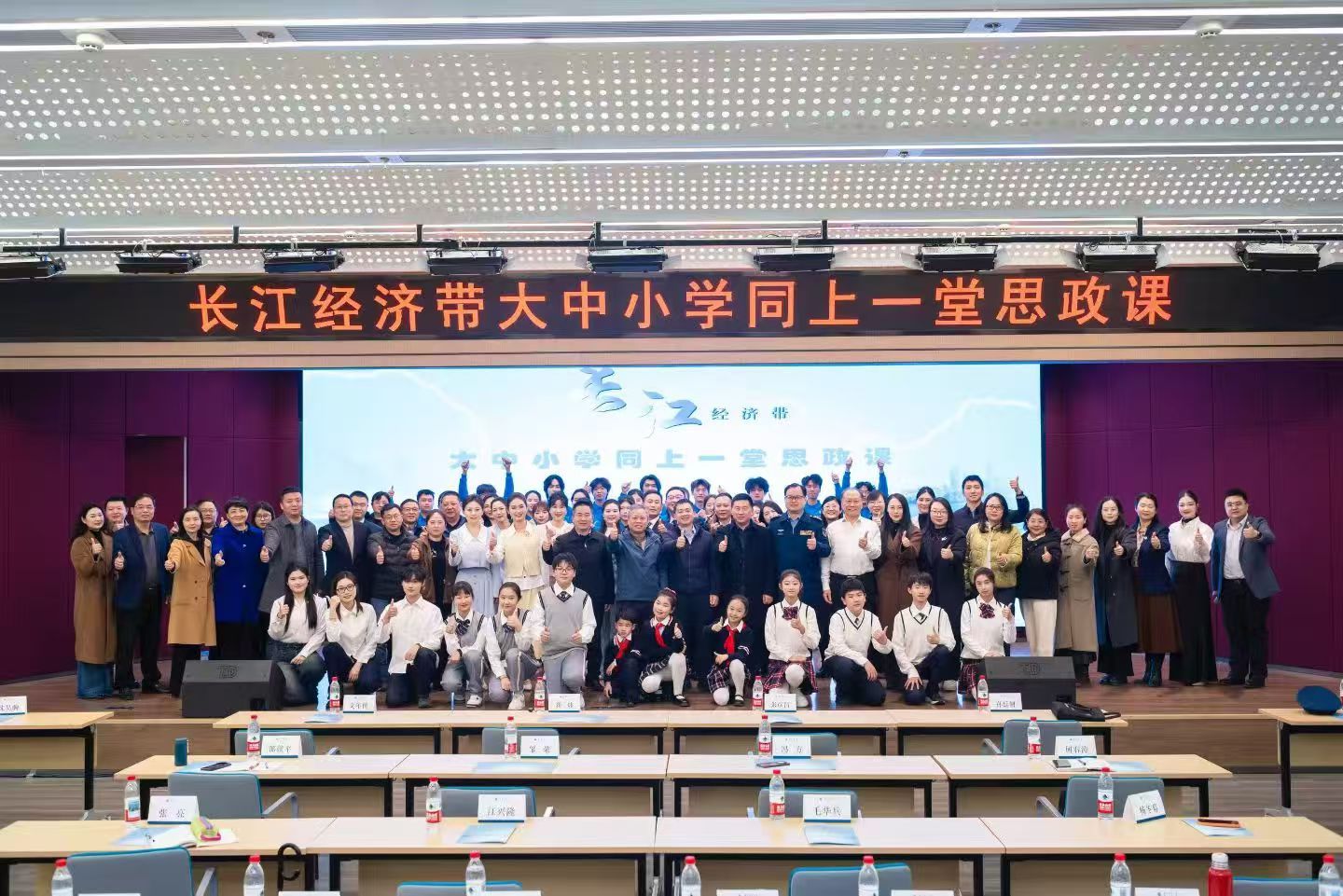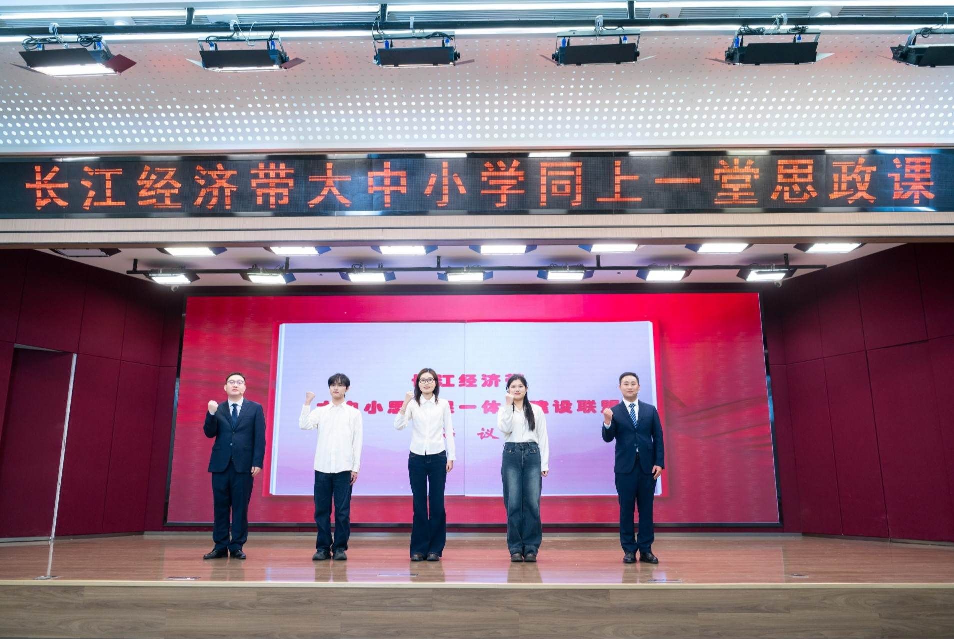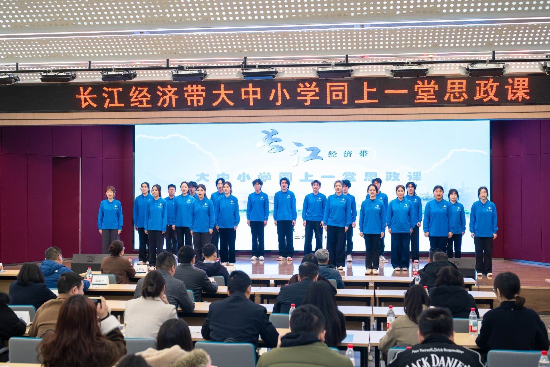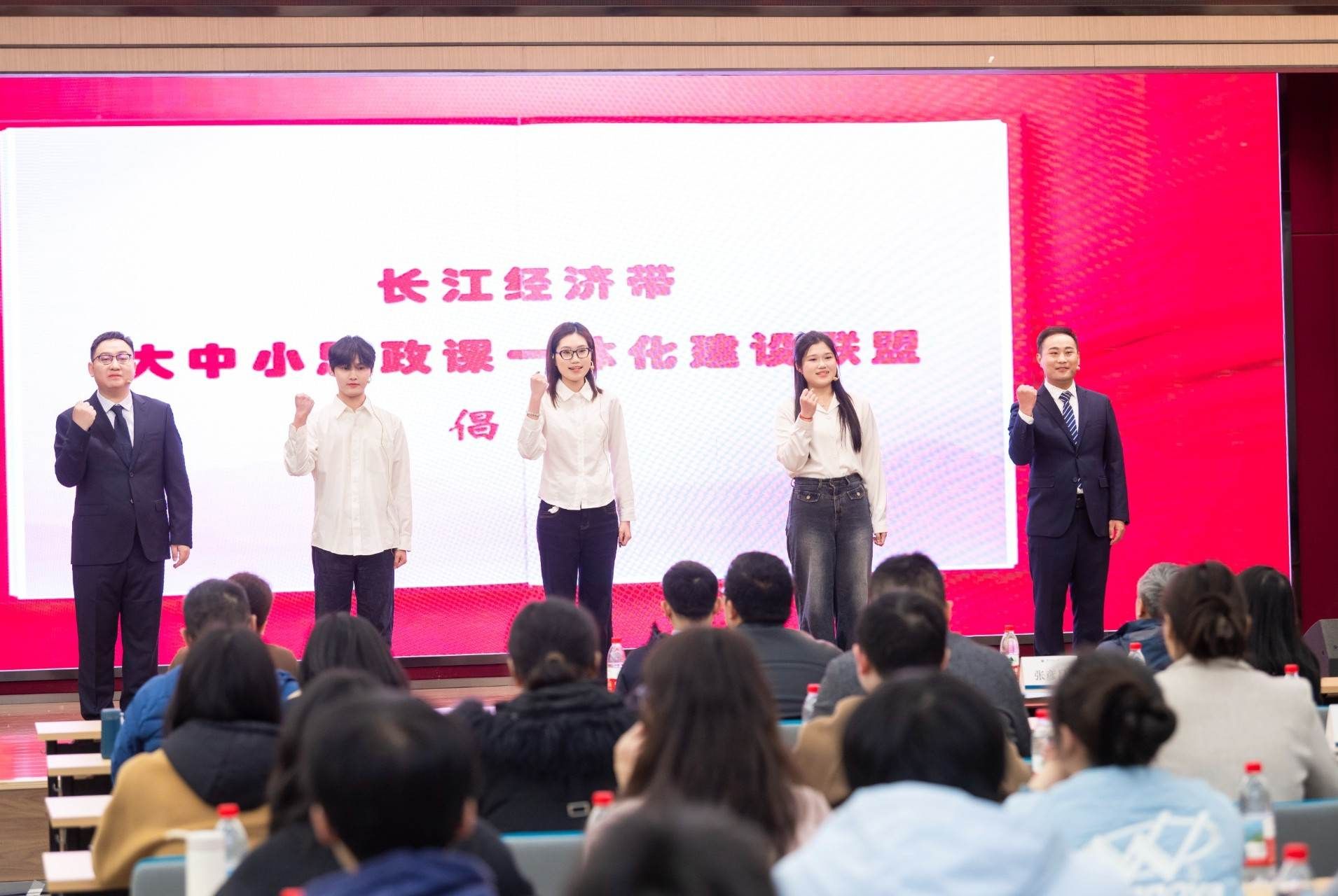 我们赞美长江,你是无穷的源泉;我们依恋长江,你有母亲的情怀……”3月18日,来自湖北、安徽、重庆、青海的200余名师生聚首华中师范大学,共同开展“长江经济带大中小学生同上一堂思政课”活动。四地师生代表在活动尾声携手走上讲台,深情地合唱《长江之歌》。