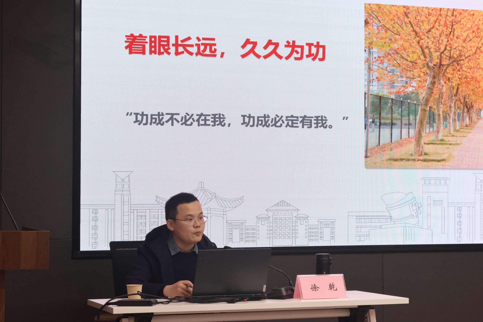 校宣传部副部长徐乾以“既要抬头看天,也要低头看路”为题,从理论与实践相结合的角度出发,强调了共青团干部在工作中既要具备宏观视野,又要注重细节的落实,以实际行动践行共青团的责任与使命。