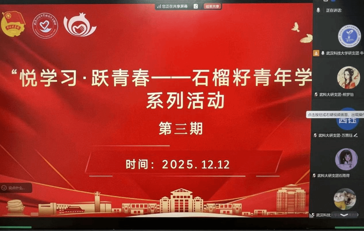 武科大网讯(通讯员牛子轩)12月12日,我校第十三届研支团顺利举办第三期“悦学习·跃青春——石榴籽青年学习荟”专题学习会。全体成员围绕习近平总书记关于志愿服务的重要寄语开展集中研学,并结合“书信往来”“暖冬计划”等特色实践分享感悟,将志愿精神转化为深耕西部教育的行动自觉。