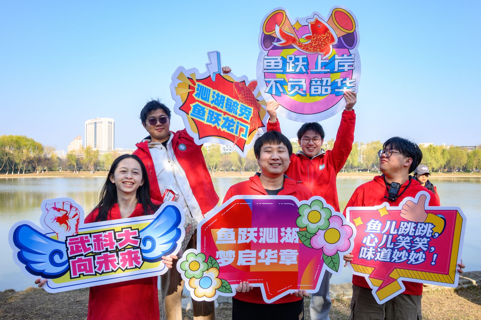武科大网讯(通讯员肖真兮 孙艺轩)“祝我的‘宝贝们’一战上岸,鲤跃龙门!”管理学院2022级辅导员窦薇今天参加了学校“沁湖逐梦·鱼跃上岸”放鱼活动,并在留言板上为学生们写下了祝福。12月26日,黄家湖校区沁湖之畔洋溢着节庆般的欢腾气息,刚结束考研初试的应届毕业生、毕业年级辅导员、国际学院的留学生、自发赶来的师生欢聚一堂,他们以歌舞欢庆、投放鱼苗等方式,为考研学子送上真挚祝福。