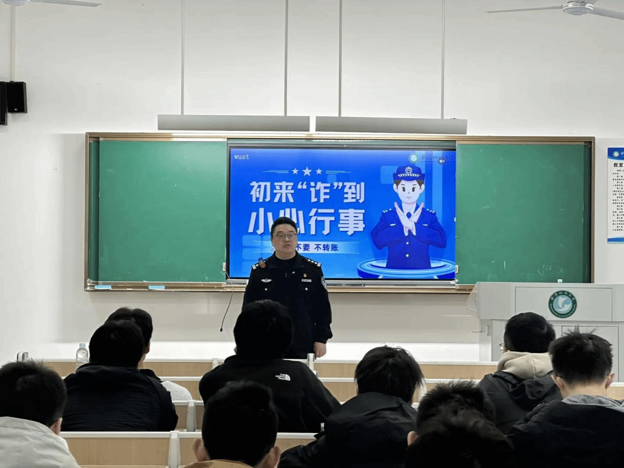 武科大网讯(通讯员黄世军 刘承武)“同学,你收到过‘外方院校’发来的催款邮件吗?别急着转账,先核实!”3月19日下午,我校黄家湖校区教十一楼内气氛热烈,一场别开生面的反诈专题讲座正在这里举行。针对马德里康普顿斯学院2025级学生特点,保卫处联合青菱街派出所精准施策,将反诈课堂“搬”进校园,用真实案例为学生筑牢安全防线。